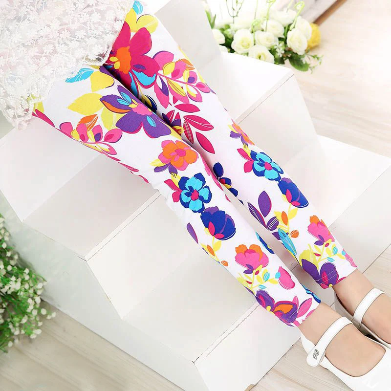 Леггинсы для девочек, хлопковые, с цветочным принтом, Осенние