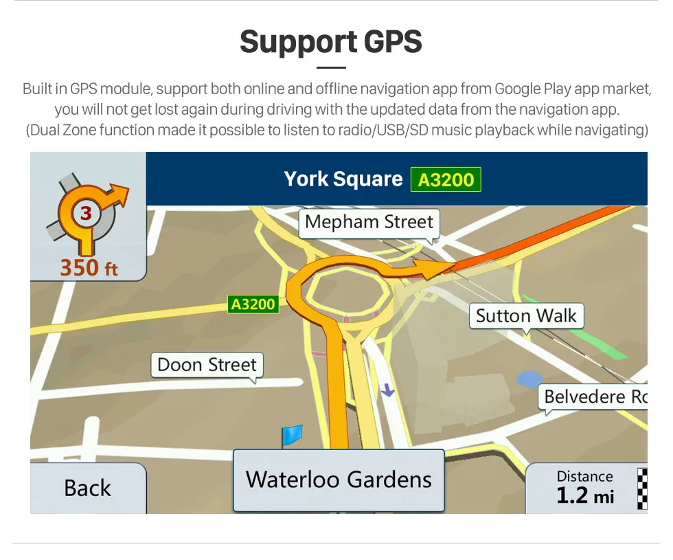 1.Wi-Fi подключение: встроенный модуль Wi-Fi, может подключаться к Интернету через Wi-Fi горячее место, скачать приложение для просмотра онлайн-телевизора, фильма, чата с вашими фирмами2. Gps-навигация: Встроенный навигационный модуль, Бесплатная навигационная карта (включая большинство стран слова), Поддержка многоязычного интерфейса/голосовой навигации3. Функция Bluetooth: Встроенный модуль bluetooth, поддержка подключения телефона по bluetooth, громкая связь для звонков или воспроизведение музыки по bluetooth4. Функция зеркальной связи: проигрыватель Android MP5 может зеркальной связью с телефоном Android с помощью usb-кабеля (ссылка на телефон IOS по WIFI), вы можете прикоснуться к экрану MP5, чтобы управлять телефоном на AndroidТелефон IOS не может работать с сенсорным экраном MP5 (не подходит для всех телефонов)5. Функция входного сигнала DVR: Поддержка внешнего видеорегистратора USB (DVR) вход (только для DVR с приложением), вы можете управлять видеорегистратором с помощью приложения6. Функция заднего вида: Поддержка входа камеры заднего вида, поддержка автомобиля более безопасная и удобная7. Настройка радио: Поддержка настройки FM, вы можете слушать радио, которое вас интересует, наслаждаться временем вождения8. Задний usb-порт Вход: Поддержка заднего кабеля USB вход, может воспроизводить музыку/фильм (u-диск не входит в комплект)Разрешение 9,1020*600: приносит вам высокое качество визуального опыта10. Улучшите качество звука с эквалайзером, используйте эквалайзер для регулировки звука, чтобы сделать лучшие результаты11. Поддержка изменения логотипа автомобиля12. Поддержка управления рулевым колесом13. Сервис Google-Play Store , Gmail , Google maps и т. Д. Поддерживает множество приложений для карт, которые вы можете скачать в Google shop ( Careland , Yandex , IGO и т. Д.)14. Поддержка онлайн и оффлайн карт, I-GO ; Sygic ; Navitel maps, других стран I-GO или Sygic maps.15. Поддержка цифрового ТВ CMMB (опционально)16. Поддержка USB DVR (опционально)17. Поддержка TMPS (опционально)18. Поддержка OBD (опционально)19. Поддержка DAB (опционально)