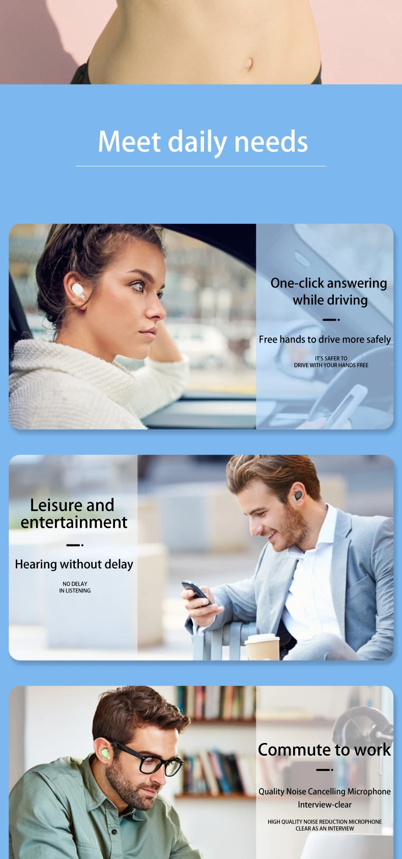 Миниатюрные наушники-вкладыши 5,0 Bluetooth, Hi-Fi беспроводная гарнитура с микрофоном, спортивные наушники-вкладыши, гарнитура с стерео звуком для всех телефонов