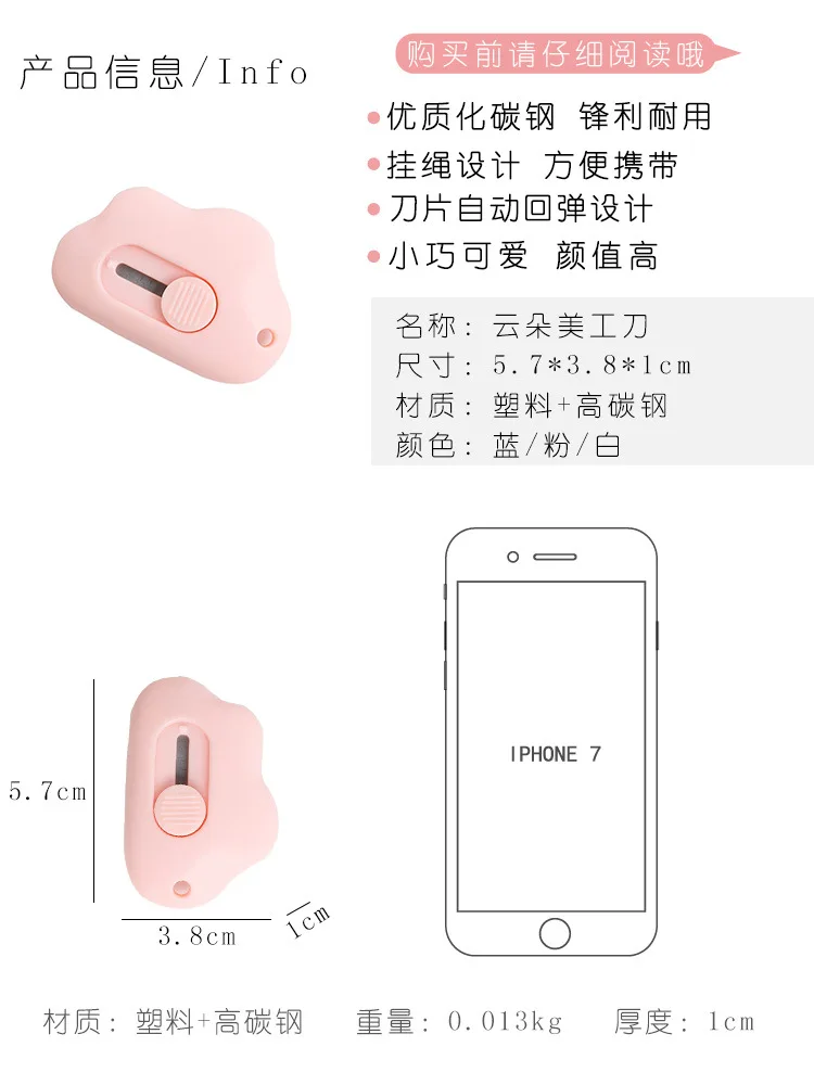 Портативный нож в облако, нож для бумаги, нож для резки бумаги, лезвие для бритвы для школы, офиса, канцелярские принадлежности для резки