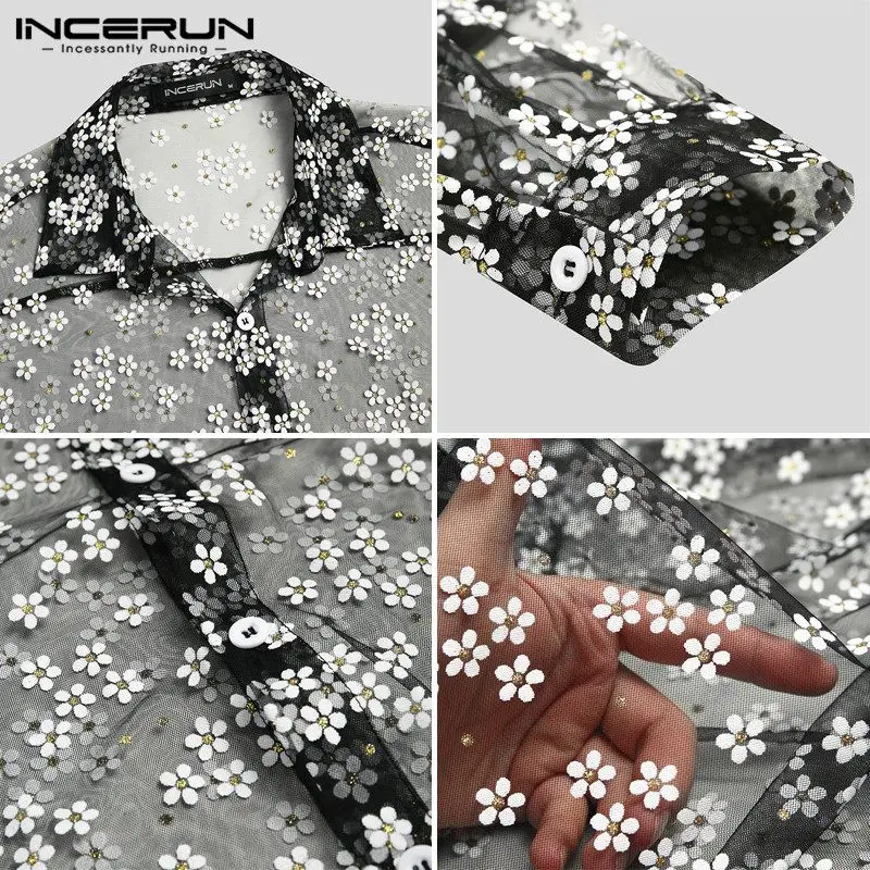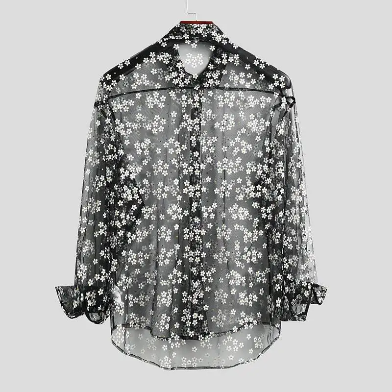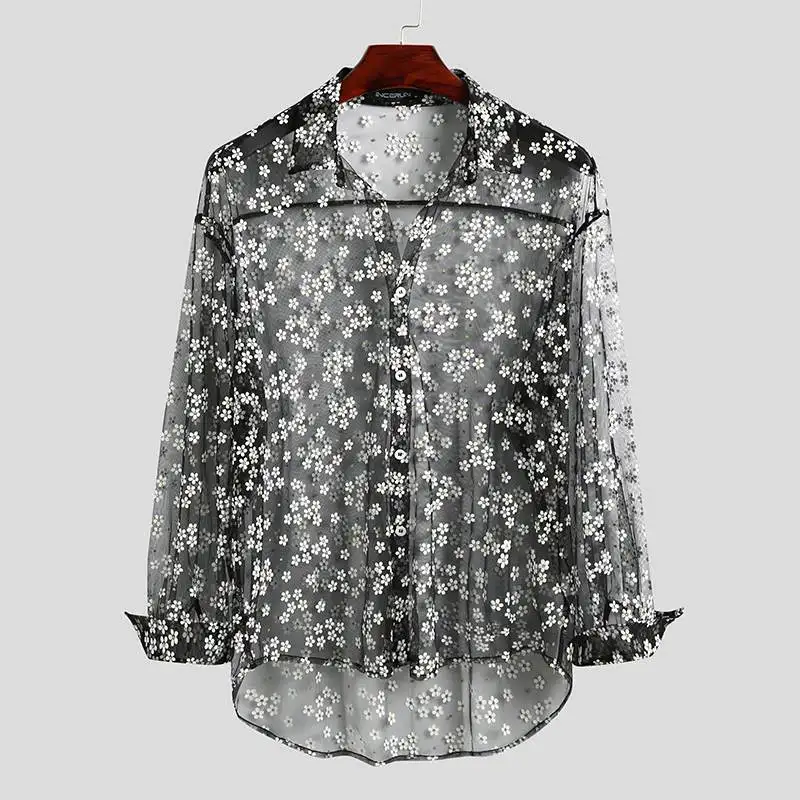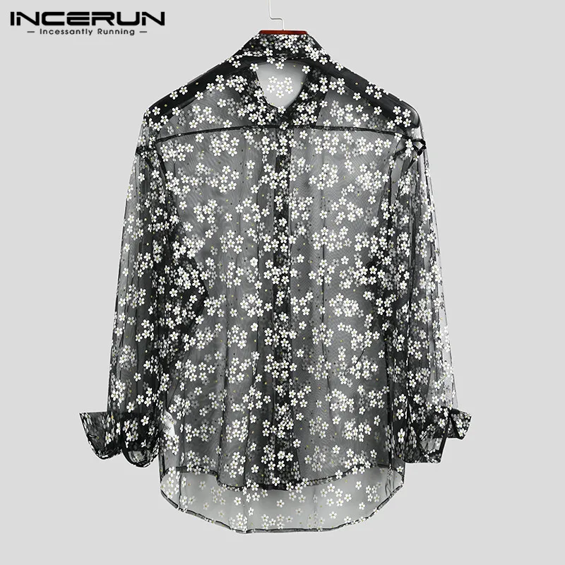 Модная мужская сетчатая рубашка, прозрачная свободная уличная блузка с длинным рукавом и принтом, вечерние блузки, Клубная одежда, повседневная одежда, Casmia, INCERUN