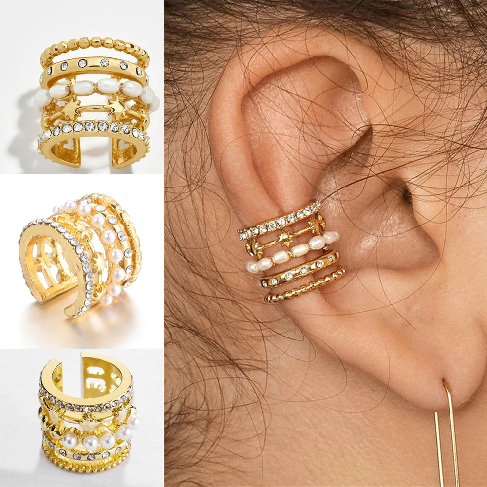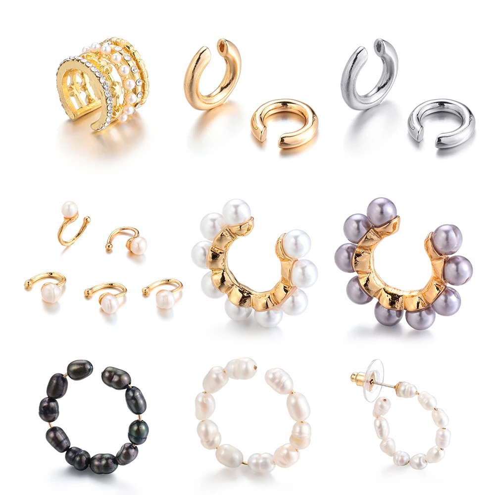 Модный пирсинг натуральный жемчуг Кафф красочные шик CZ серьги для женщин мужские ювелирные изделия, аксессуары