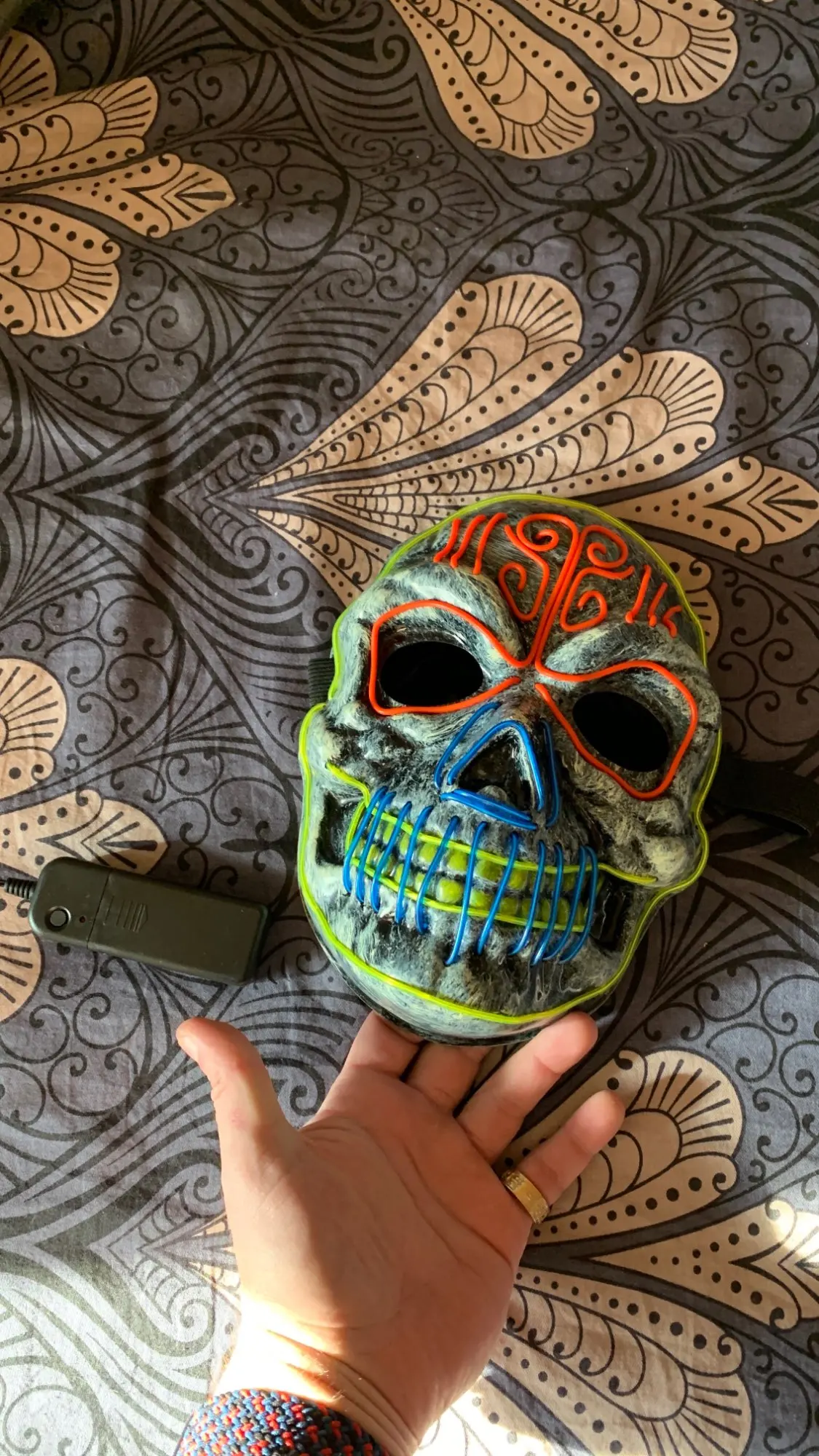 Очень крутая маска! Светодиоды работают на различных частотах. К сожалению, маска не для большого лица, а для аккумуляторной батареи