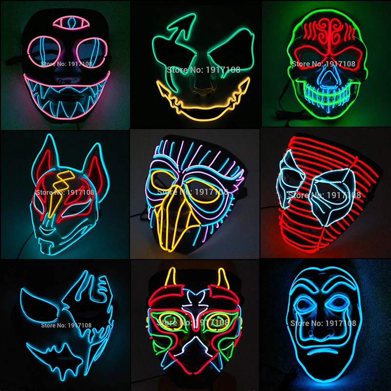 Маска светодиодная светящаяся, для Хэллоуина, светится в темноте