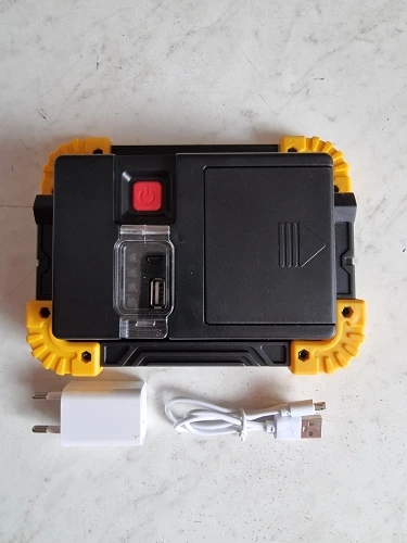 Модель светодиодный бусины: COBИндекс цветопередачи: 85Материал: алюминиевый сплав + ABSСветильник угол излучения: 180 градусовВес изделия: 293 гВес брутто: 400 гРазмер изделия: 173x126 мм/6,81x4,96"Класс защиты от поражения электрическим током: IP65Цветовая температура 6500 K (холодный белый)Мощность: 100WВремя освещения: 8-12 часовВремя зарядки: 4-6 часовМощность аккумулятора: 2*18650 аккумуляторная батарея/3 * AA батарея. (Если вы покупаете батареюОбслуживание, мы отправим батарею. Если у покупки нет батареи, то товар, который мы отправляем, не будет включать батарею.)Широкое использование: этот рабочий светильник имеет много режимов (низкая яркость, высокая яркость и стробоскоп) и отлично подходит для использования в помещениях и на открытом воздухе, например, для ремонта автомобилей, мастерской, строительной площадки, работы, кемпинга, аварийные ситуации, Пешие прогулки, охота, исследование, поиск и так далее.