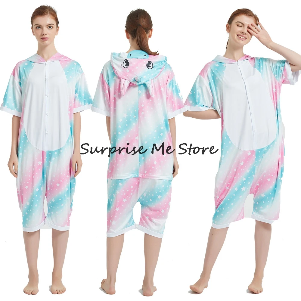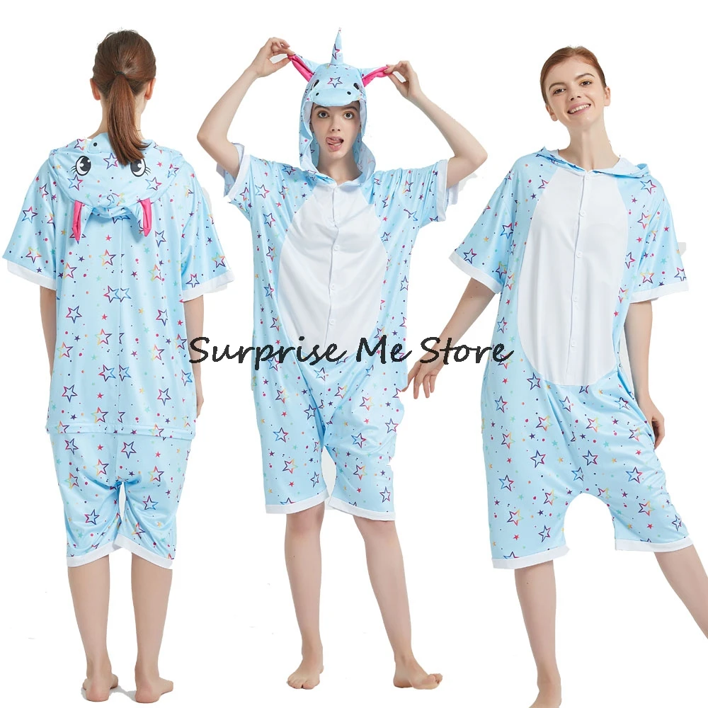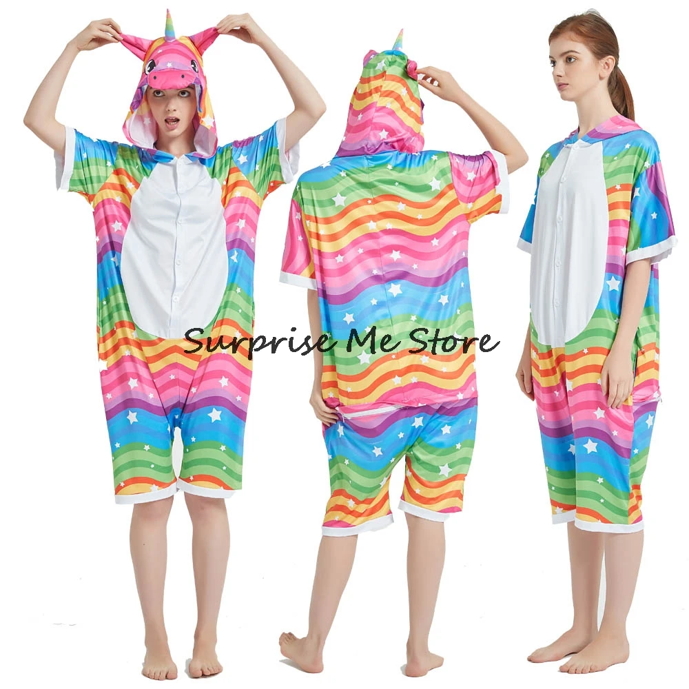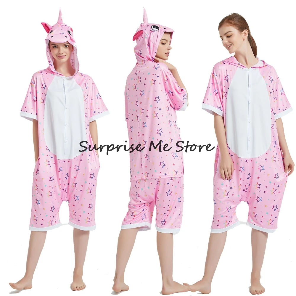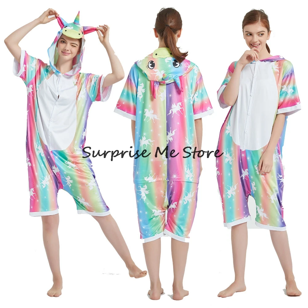 Женский Костюм кигуруми анимэ косплей, летняя одежда для взрослых, короткий рукав, единорог, панда