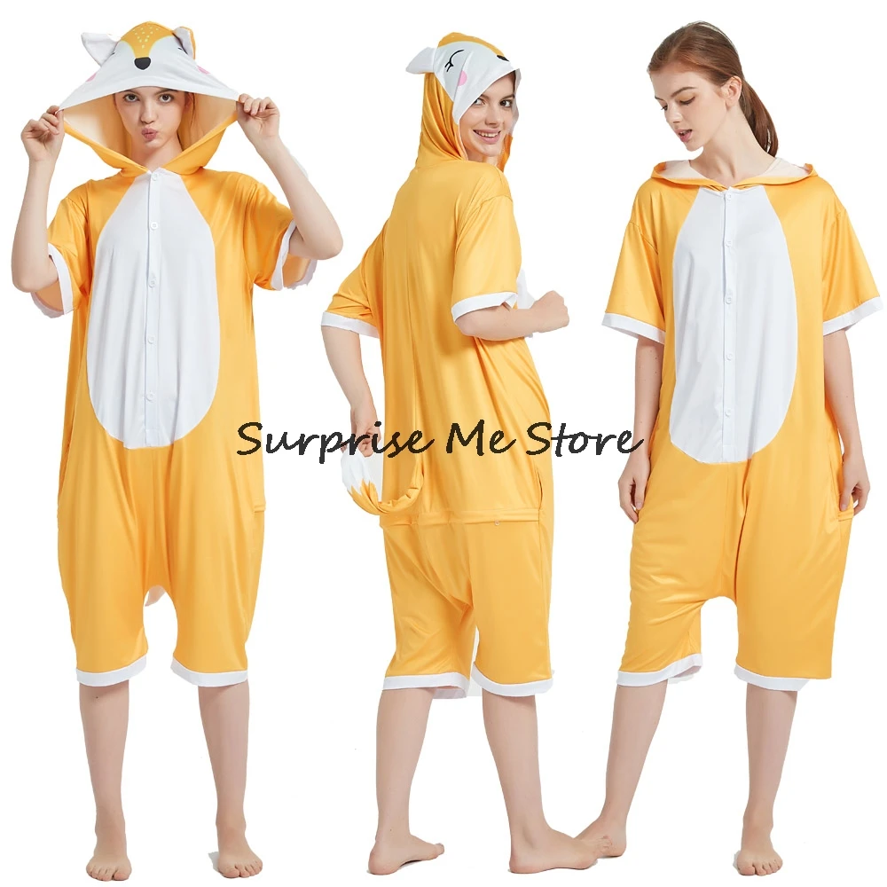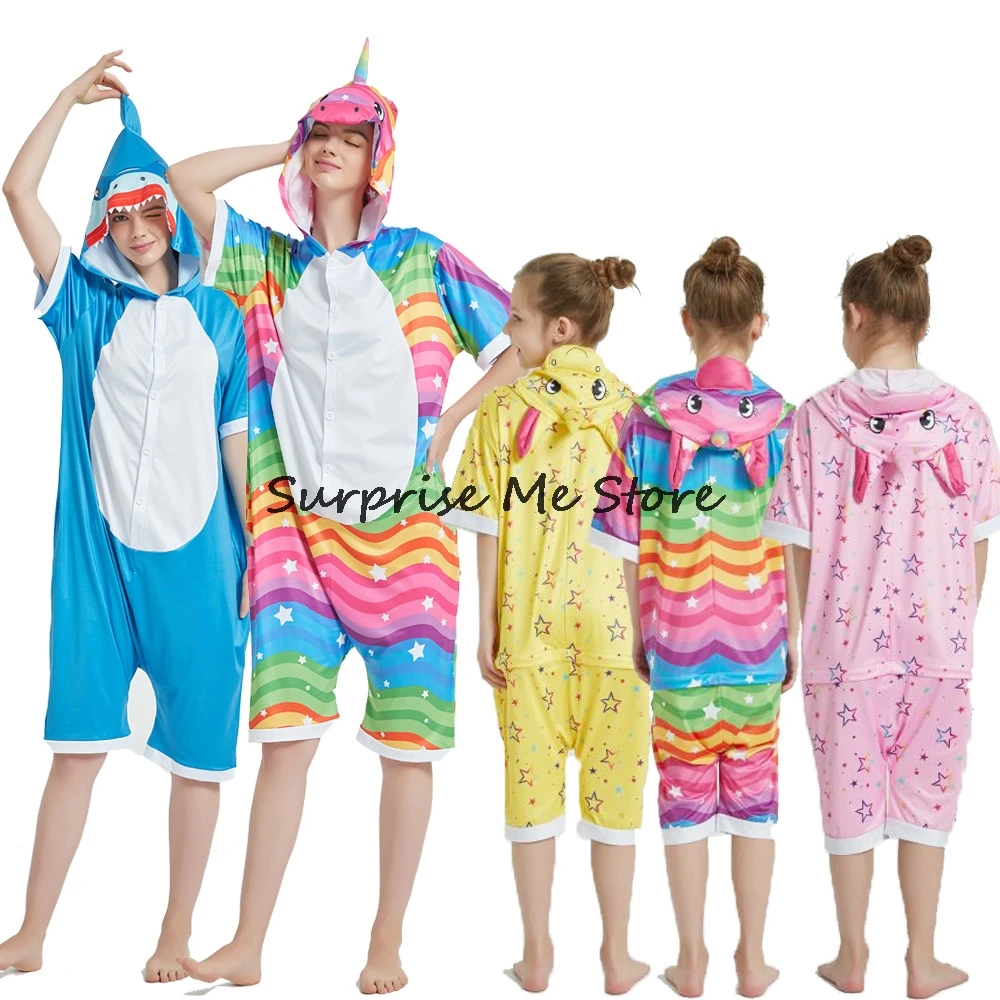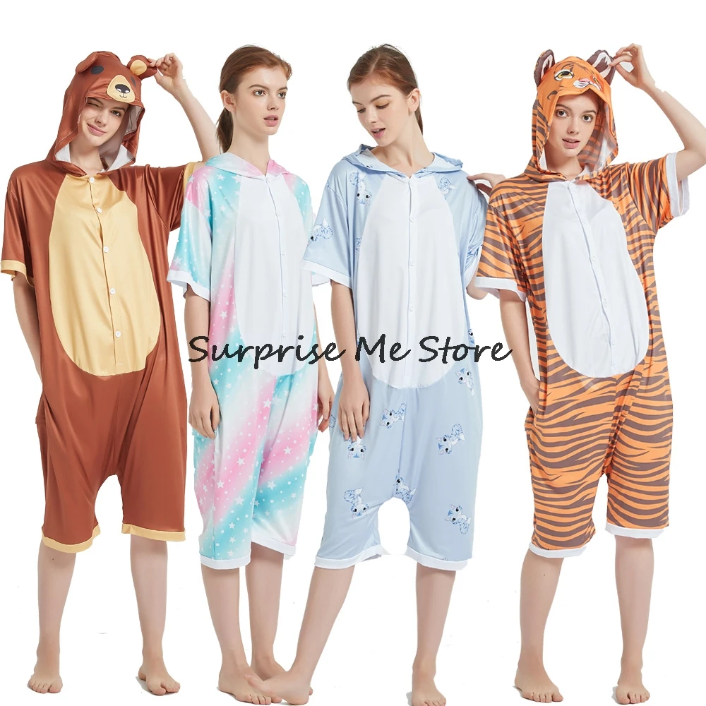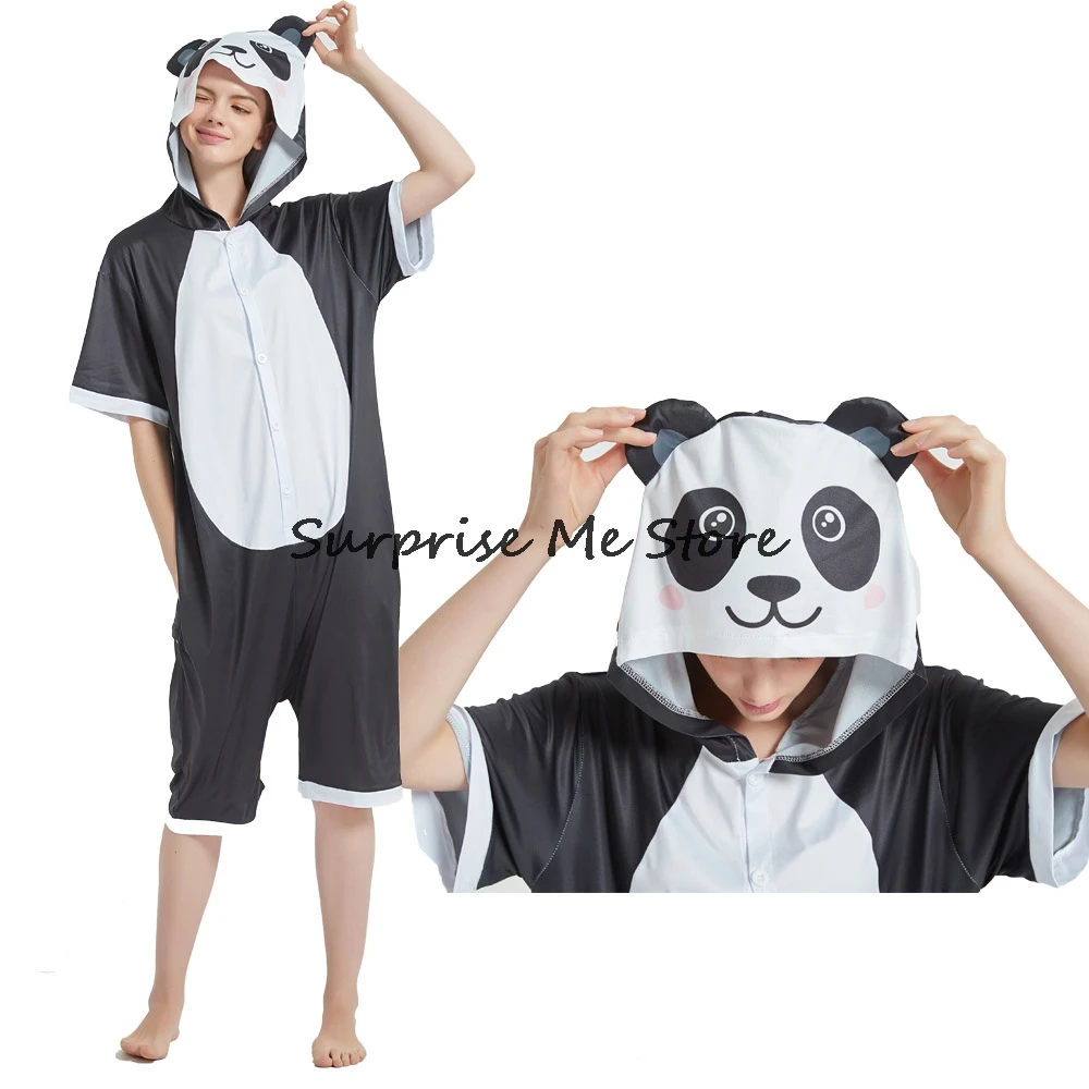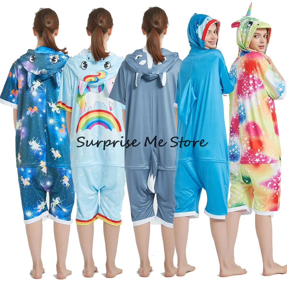 Женский Костюм кигуруми анимэ косплей, летняя одежда для взрослых, короткий рукав, единорог, панда