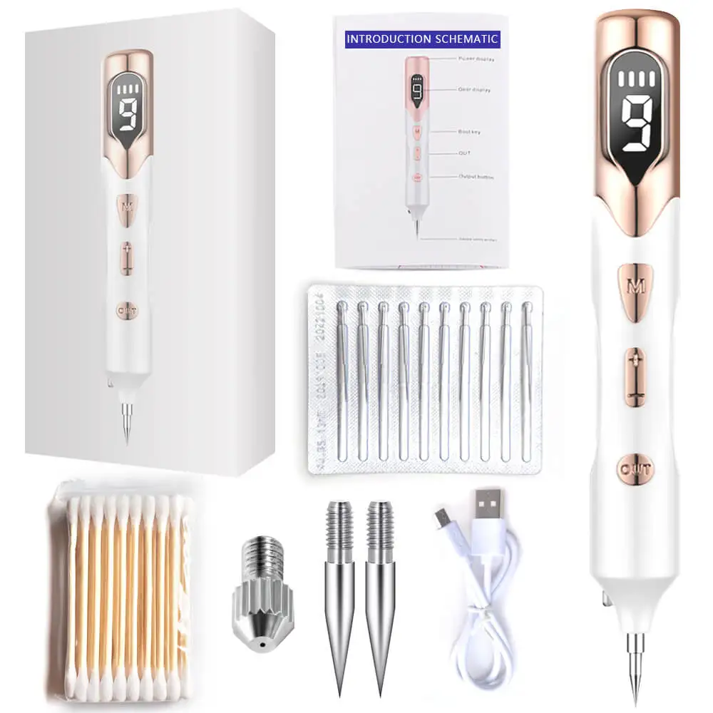 Посылка: 1 ручка прибор для удаления родинок 30 х ватных тампонов 5 тонких игл 1 х грубые иглы 1 х крышка иглы 1 x USB-кабель для зарядки 1 х Руководство пользователя 1 х упаковочная коробка > 3 регулируемых уровня > Без ЖК-дисплея