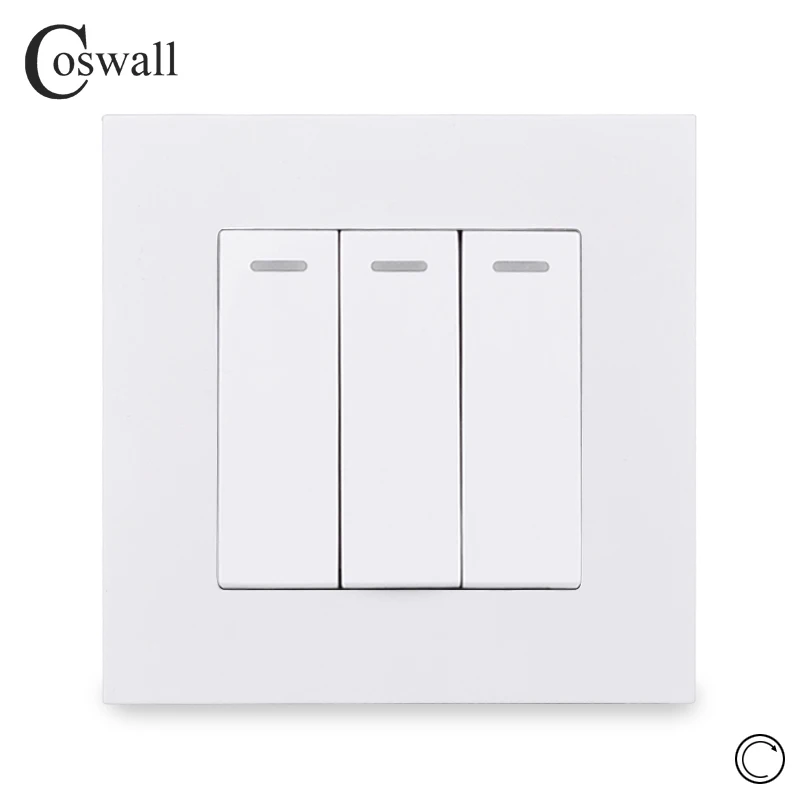 Coswall, простой стиль, панель из поликарбоната, 3 банды, 1 способ сброса, импульсный переключатель, мгновенный контакт, кнопочный настенный светильник, переключатель 16А