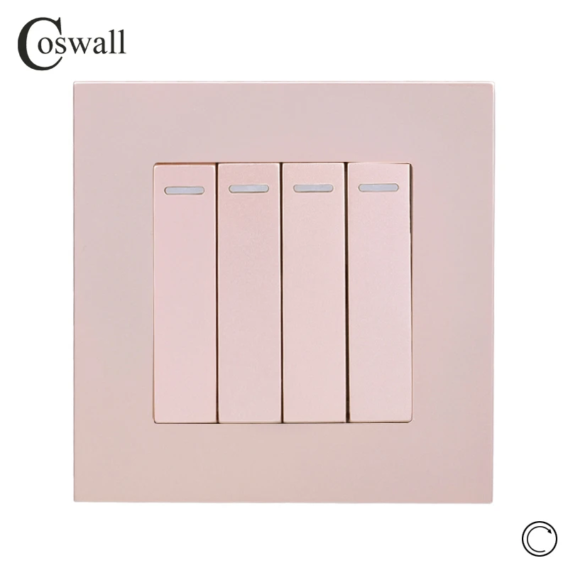 Coswall, простой стиль, панель из поликарбоната, 4 банды, 1 способ сброса, импульсный переключатель, мгновенный контакт, кнопочный настенный светильник, переключатель 16А