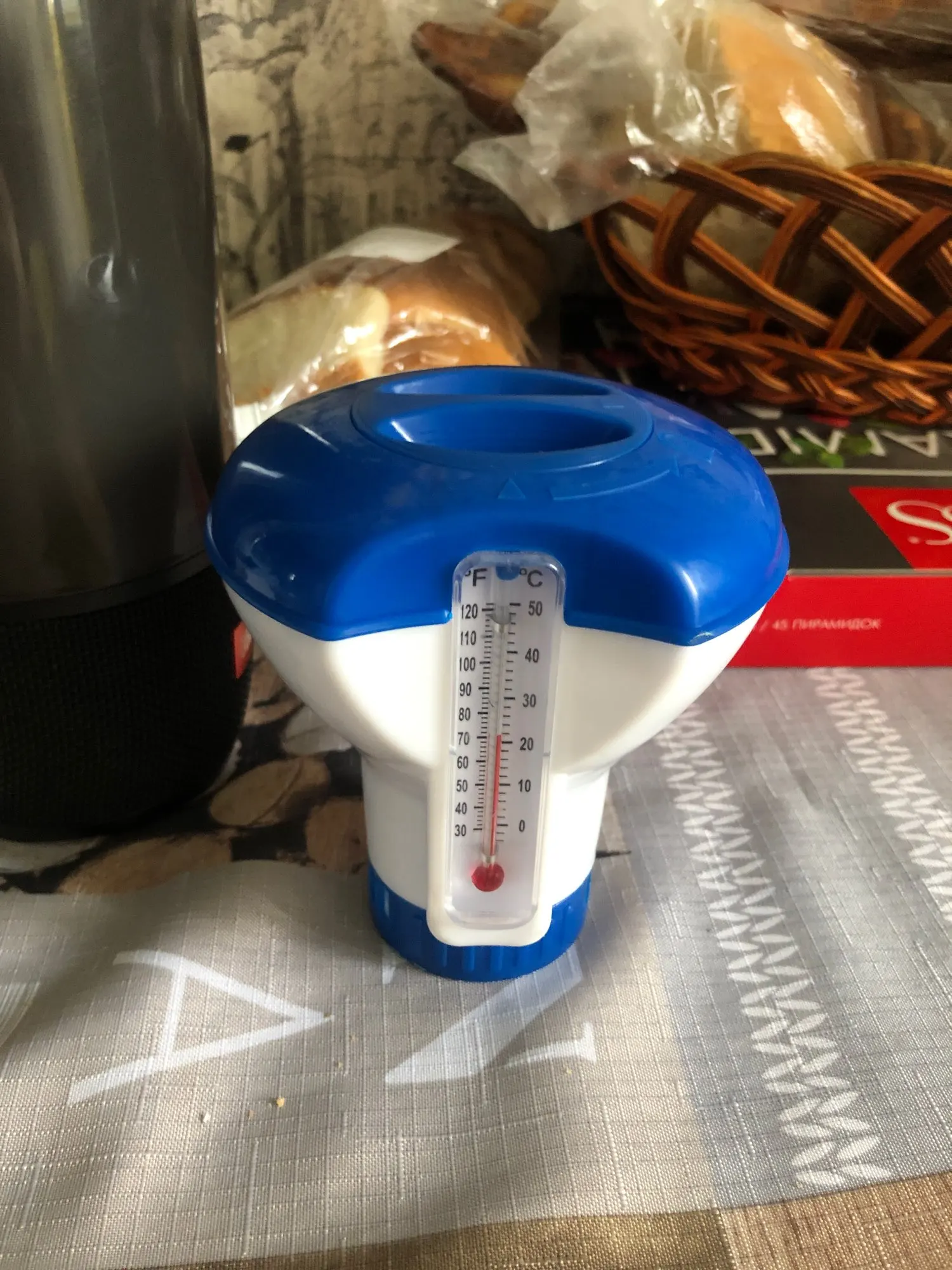 Плавающий контейнер для дезинфекции таблеток в бассейне с термометр...