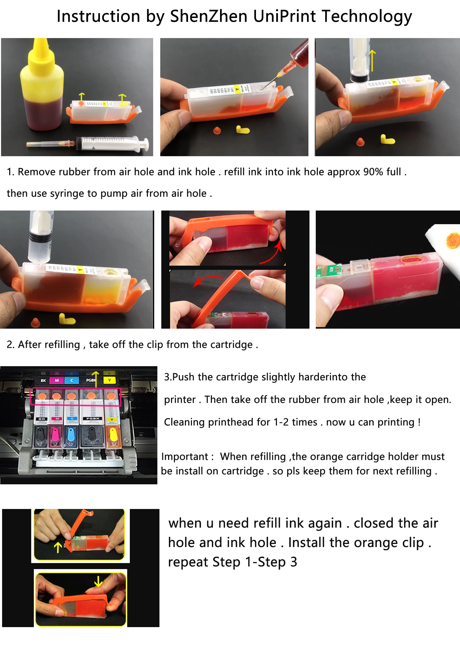 Особенности: 1. Картридж прямого пополнения может заполнить чернила напрямую, принять ТворческийДизайн, заполнение чернил легко: Заполните чернила полностью в картридж с помощью шприца, без использования вакуумаМетод пополнения, не нужен специальный инструмент для наполнения и специальный техник. ЭтоПатрон изобретения веха.2. Аналогичная структура с оригинальным картриджем, с использованием антипригарной губки, может быть заполнена пигментом или съедобными чернилами. Предотвращает поломку головки принтера из-за старения картриджа.3. Инновация на основе картриджа первого поколения, убедитесь, что нет утечки чернил, точки печати, блок при печати