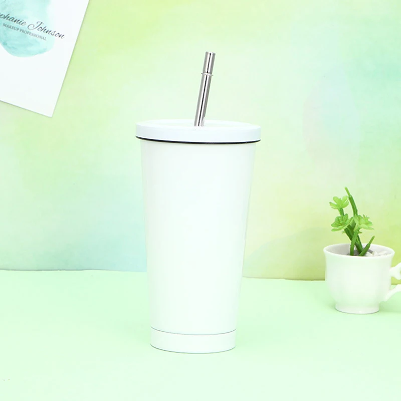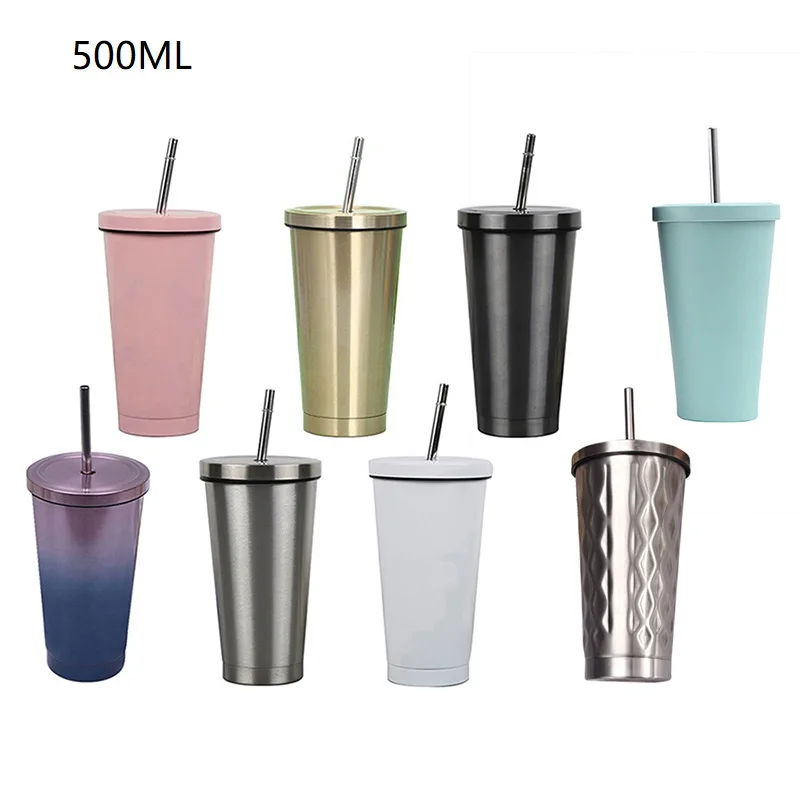 Термокружка Из Нержавеющей Стали, 500 мл, с крышкой и соломинкой, кружка для кофе, напитков, дорожная чашка, чайная чашка, термос, металлическая чашка, стакан для пива