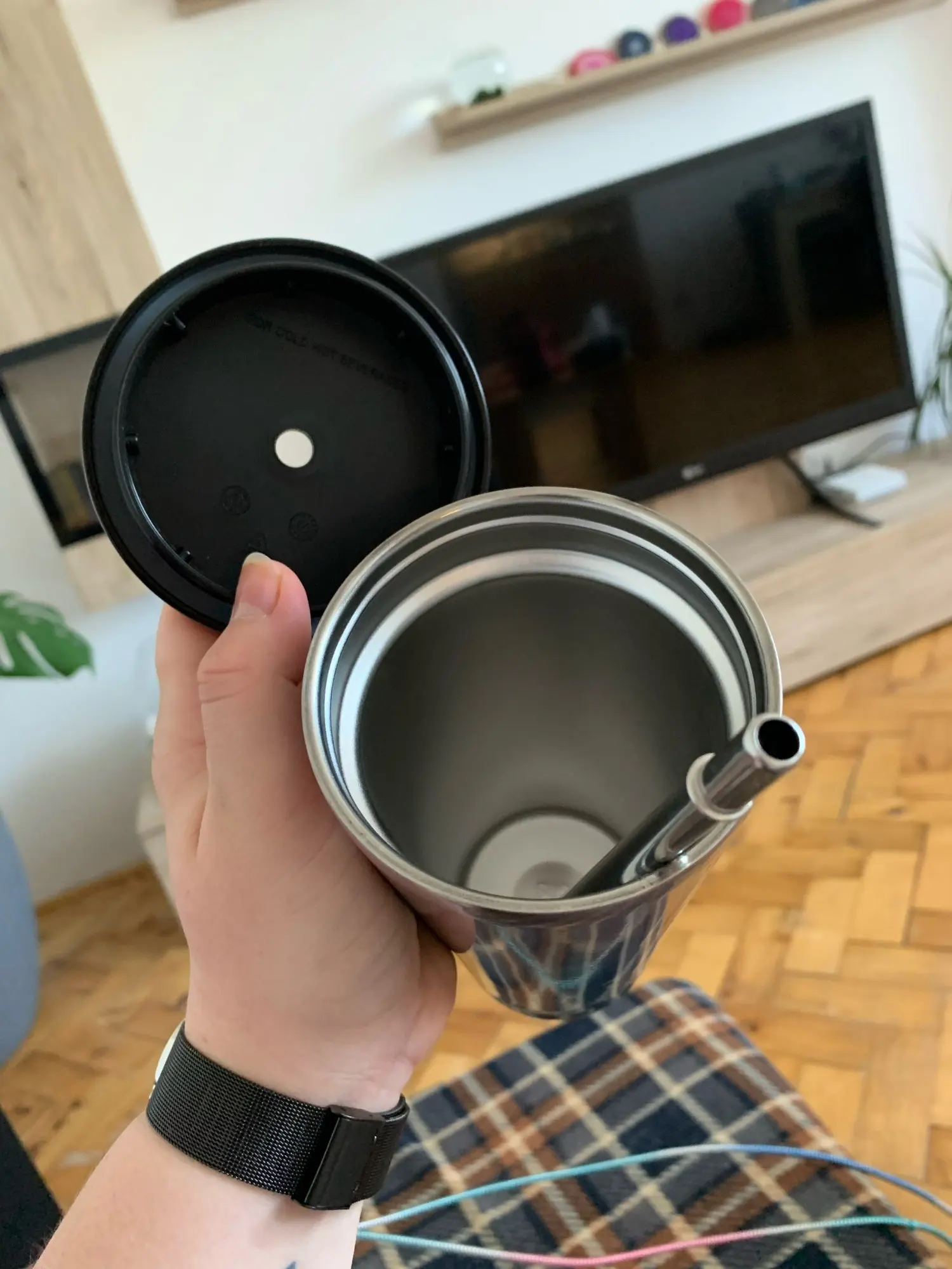 очень крутой стакан. трубочка со спец колечком, чтобы не выпадала. хорошо держит холод