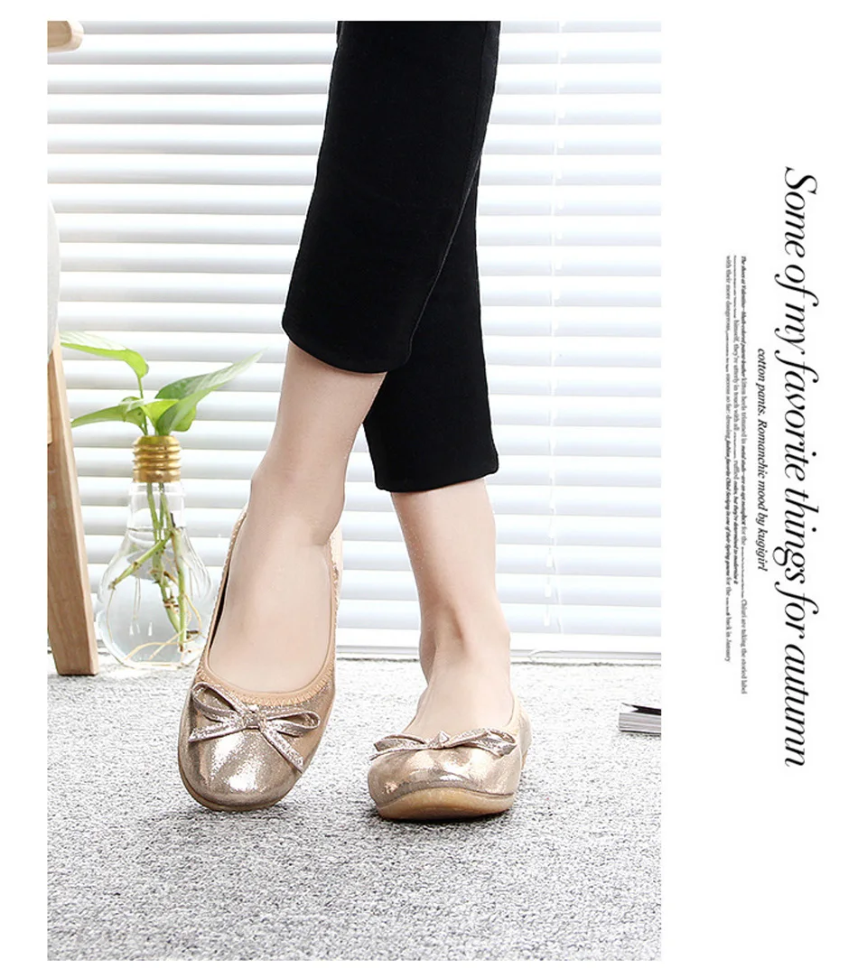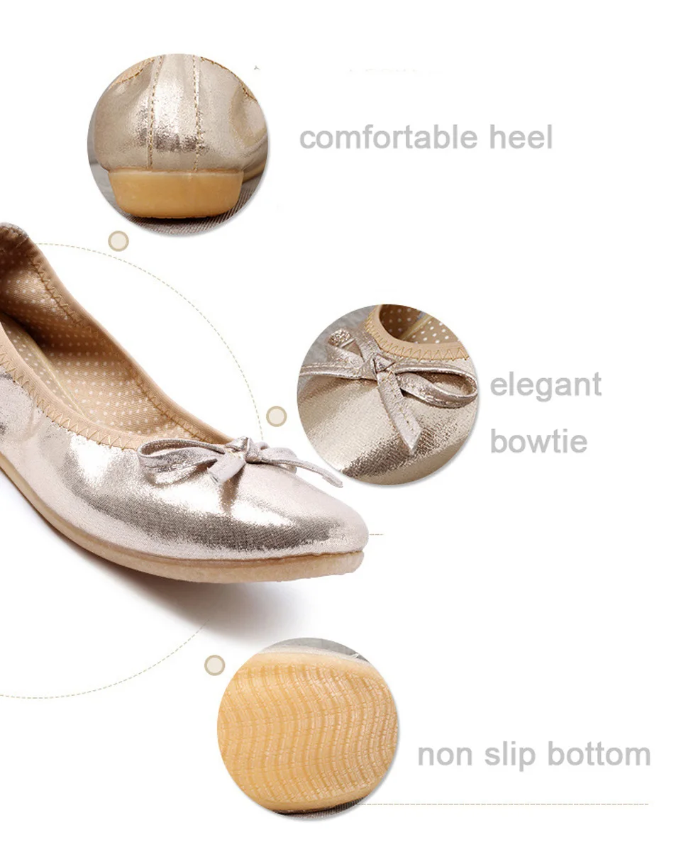Ngouxm Весна Осень Женские складные балетки золотистые мокасины балетки без шнуровки кожаные закрытые туфли