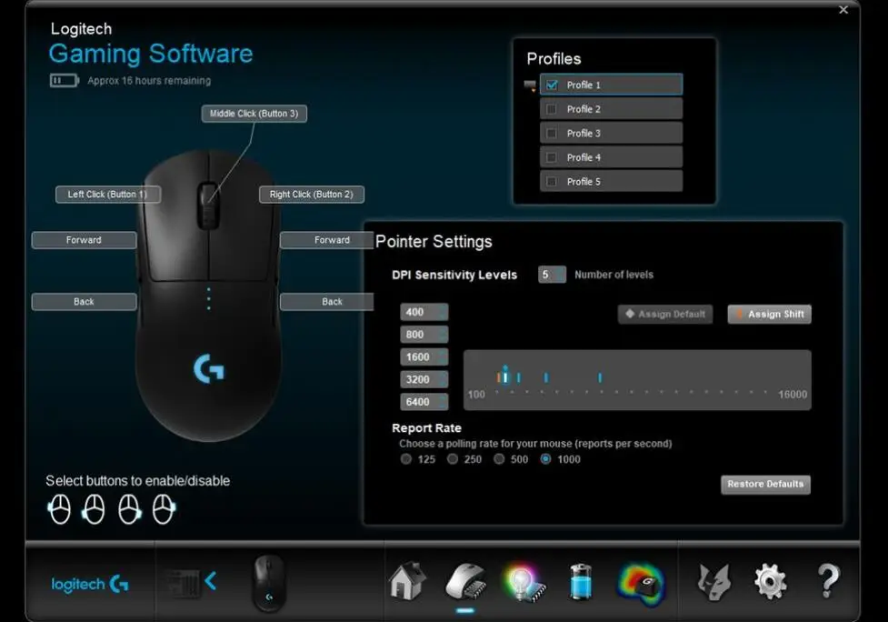 ОтслеживаниеСенсор: HEROРазрешение: 100 - 16,000 DPIНулевое сглаживание/Ускорение/фильтрацияМакс. Ускорение: >40 гМаксимальная скорость: >400 IPSОтзывчивостьФормат данных USB: 16 бит/осьСкорость передачи данных по USB: 1000 Гц (1 мс)Беспроводная технология: LIGHTSPEED WirelessМикропроцессор: 32-разрядный ARMСрок службы батареиОсвещение по умолчанию: 48 часовНет освещения: 60 часовДругие особенностиСовместимость с POWERPLAYВстроенная память: 5 профилейLIGHTSYNC RGB: 1 зонаМеханическая система натяжения кнопокТребованияWindows 7 или более поздней версииMacOS? 10,11 или более поздней версииХромовая ОСUsb-портДоступ в Интернет для Logitech G HUB (опционально)Физические характеристикиВысота: 125,0 ммШирина: 63,5 ммГлубина: 40,0 ммВес: 80 гДлина кабеля: 1,80 м