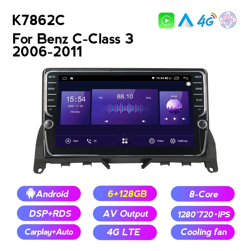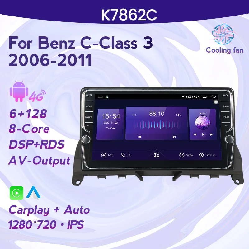 Автомобильный GPS-радиоплеер для Mercedes Benz C Class 3 W204 S204 128-2011DSP carplay + Автомобильный IPS-вентилятор охлаждения 4G LTE, Android 11, 6G, 2006G