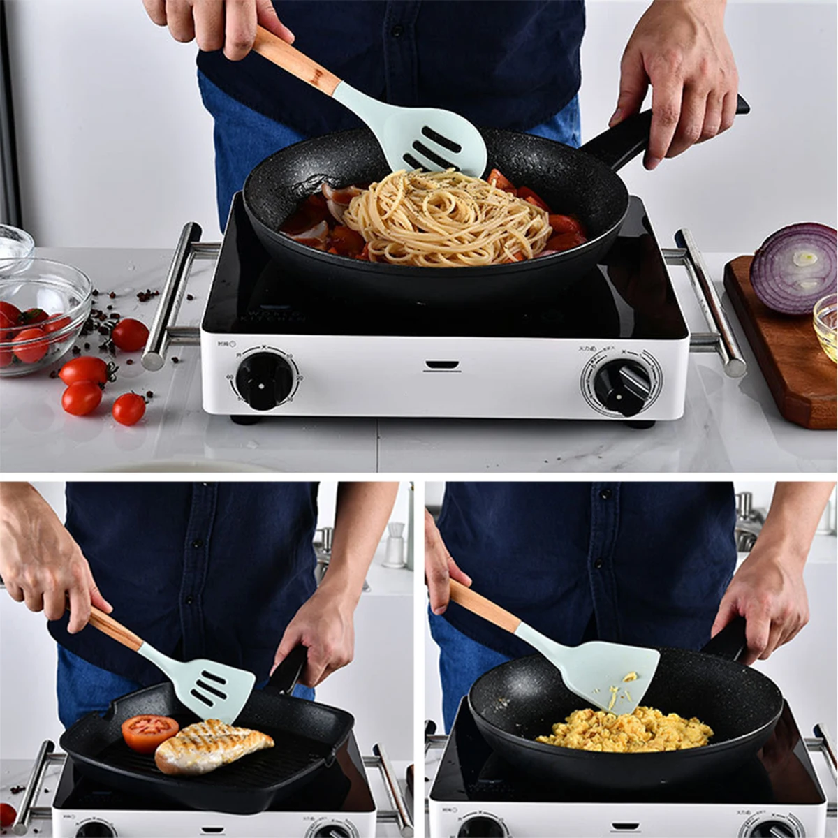 1 шт., Силиконовая Термостойкая кухонная утварь с деревянной ручкой