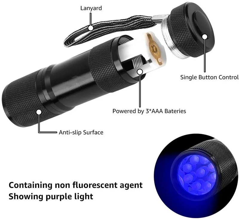Ежедневное использование-этот черный светильник излучает длину волны 395 нм, легко пятна мочи животных на ковре или одежде, как использование кошки или МО; И невидимые пятна пищи на полу или столе. Время, чтобы получить его и очистить дом.