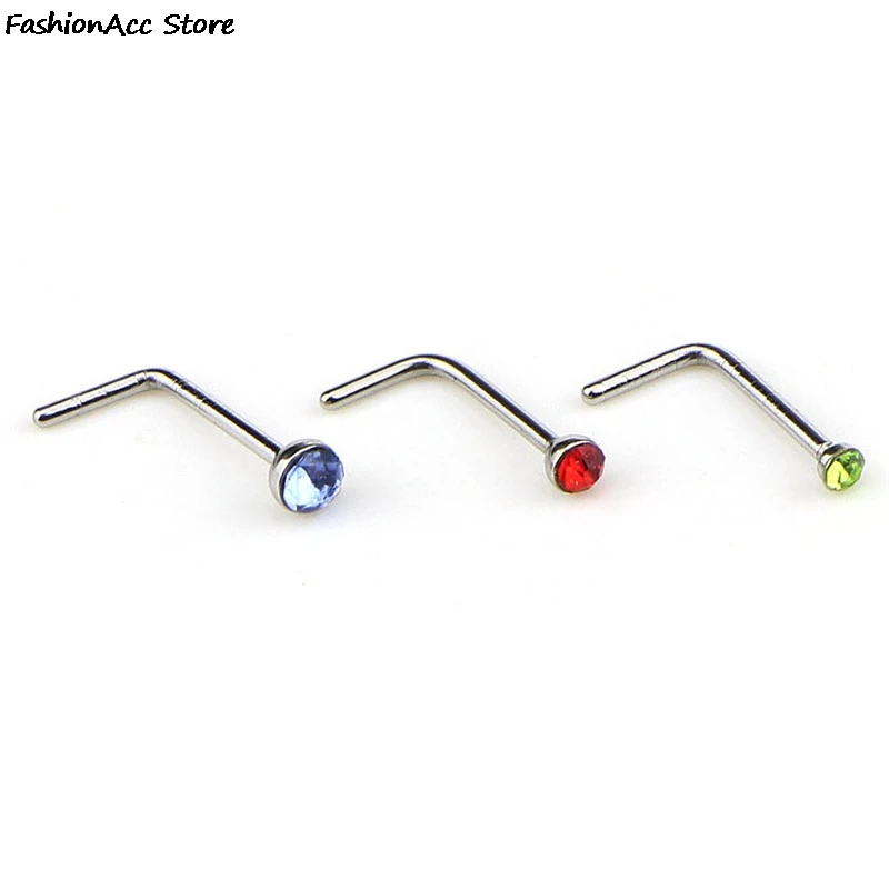 Кольцо в нос женское, 60, шт.упак. л, из нержавеющей стали, с кристаллами, хирургический стальной нос
