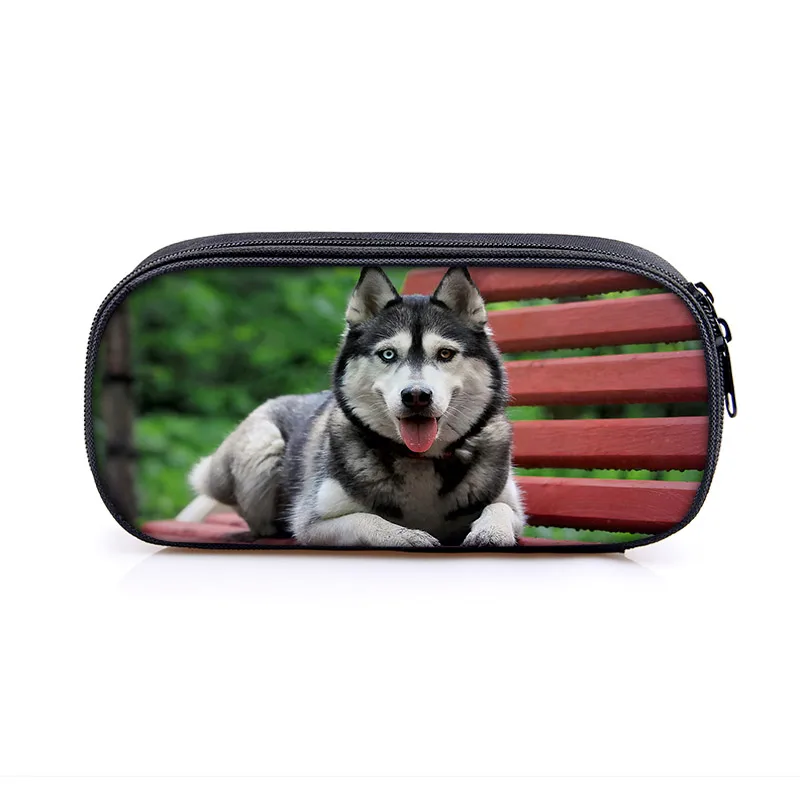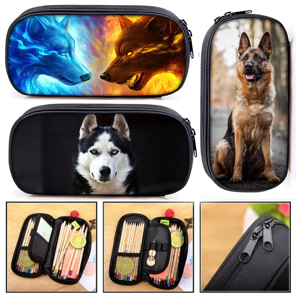 Волкнемецкая овчаркахаски собака карандаш держатель сумки функциональные косметички чехлы для мальчиков пенал черный канцелярский Органайзер