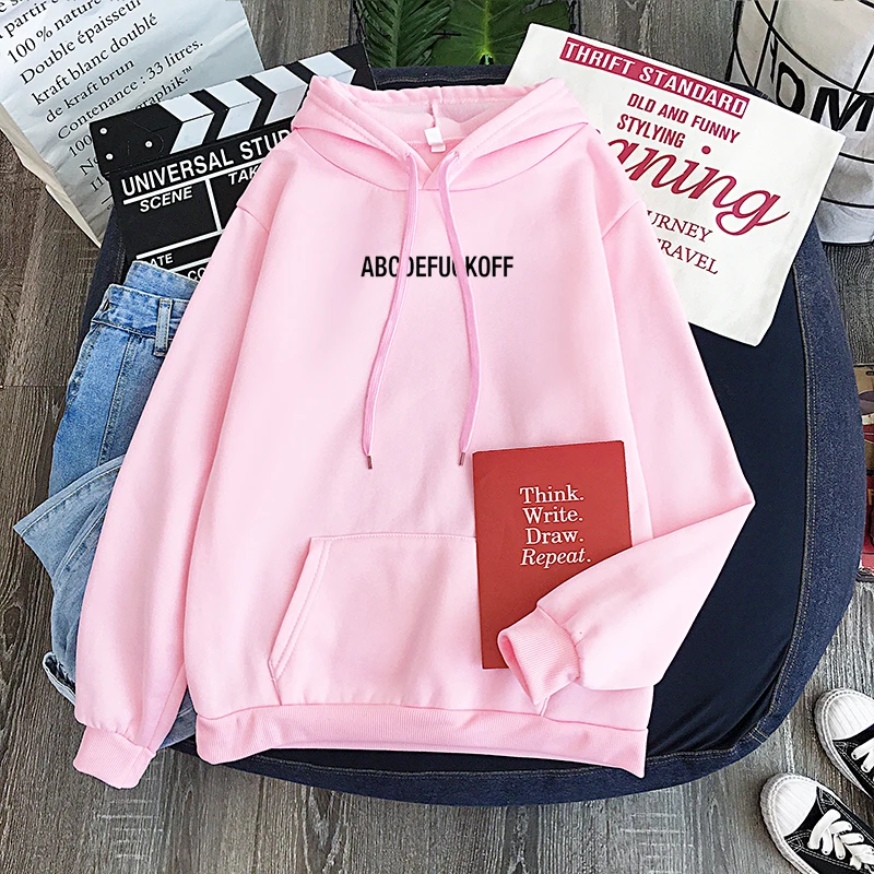 Толстовка Женская ABCDEFUCKOFF с капюшоном, с надписью