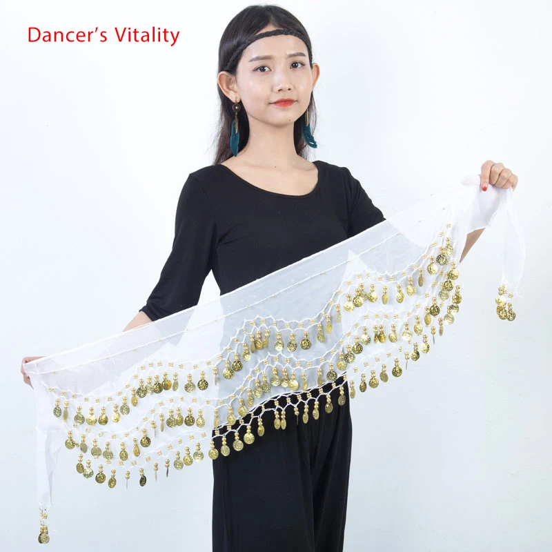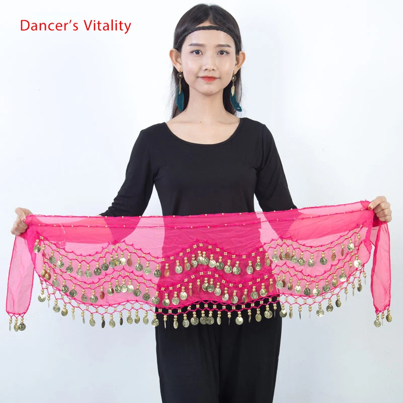Пояс для танца живота женский, набедренный платок с бахромой и блестками, 128 монет