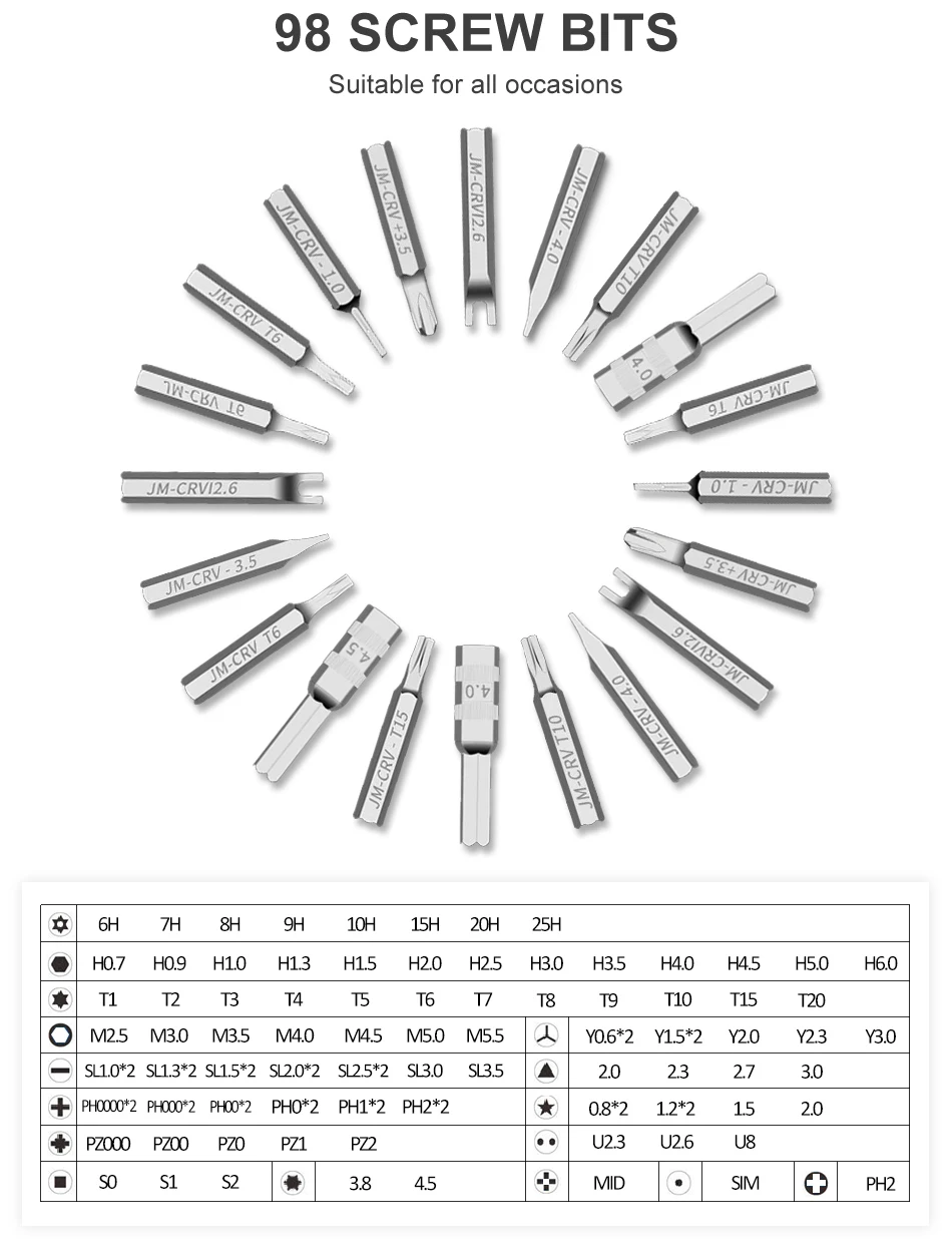 1,115 в 1 мульти Набор отверток: используется для бытовой техники, такой как телевизоры, кондиционеры, вентиляторы, холодильники, ремонт автомобилей.