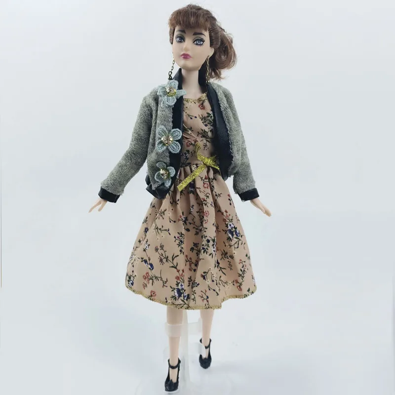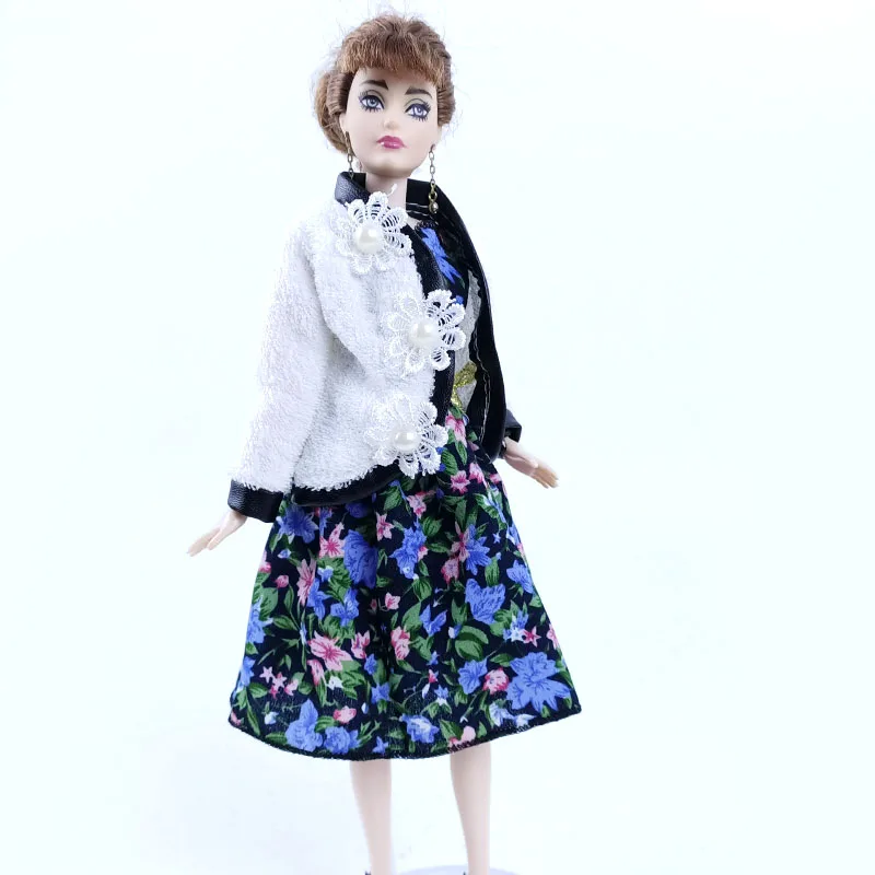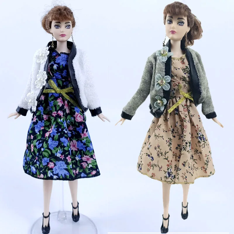 Элегантное пальто и сельское Цветочное платье для куклы Барби, наряды, комплект одежды ручной работы для куклы 16, аксессуары для кукол, детская игрушка