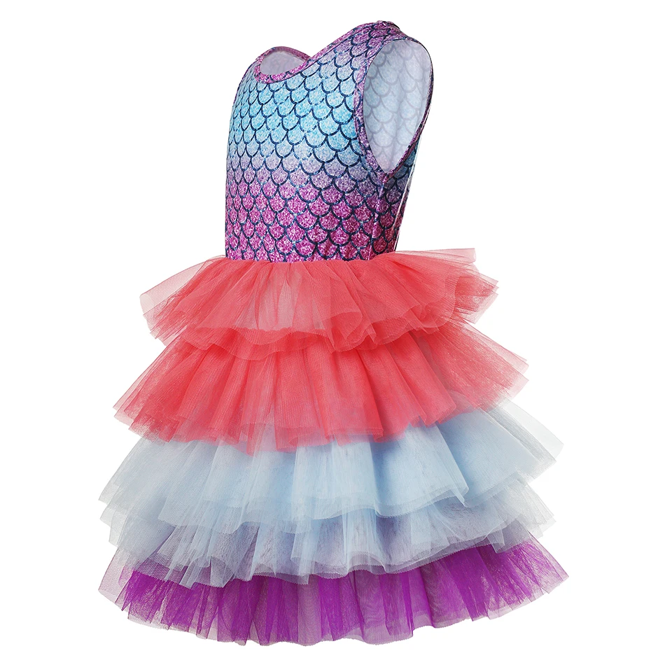Многослойное Сетчатое платье для маленьких девочек, без рукавов, детское летнее праздничное бальное платье принцессы-русалки, нарядное модное платье для девочек