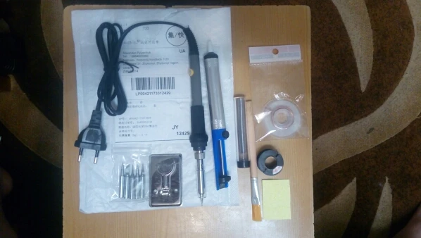 Пришло быстро примерно недели за две. Но упаковка вообще никакая. Просто пакетик и внем, все. Когда получал на почте подумал, что там вообще ничего целого нет, но на удивление все целенькое за исключением паяльника на паяльнике отвалился регулятор напряжения. Он просто выпал из гнезда, но я ее вернул на место и все Ок. Так что мне повезло. На фото все видно проблему обвел кружками)