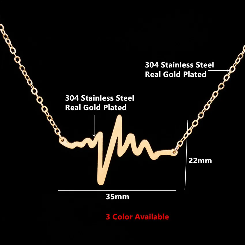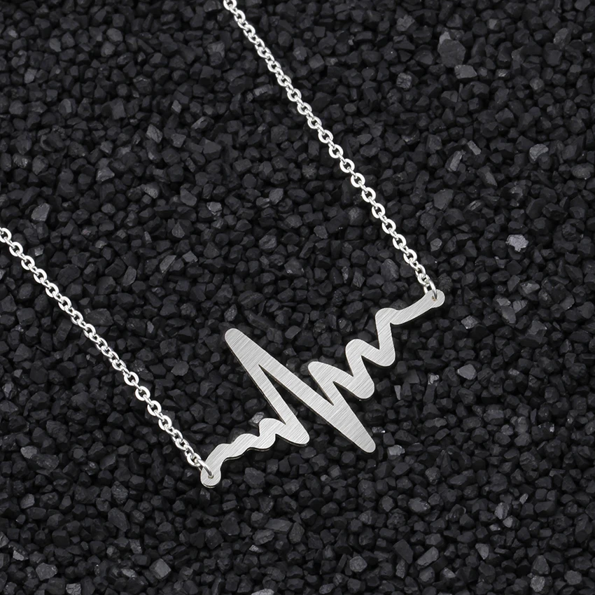 Stainless Steel Heart Beat Rhythm Necklace Charm Women EKG Lifeline...