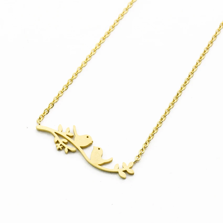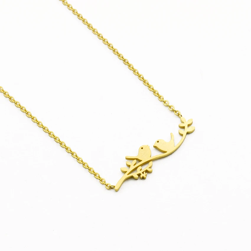 Милая пара, кулон в виде птицы Sparrow, ожерелье для женщин и мужчин, ювелирное изделие, золотая цепочка из нержавеющей стали, ожерелье с листьями