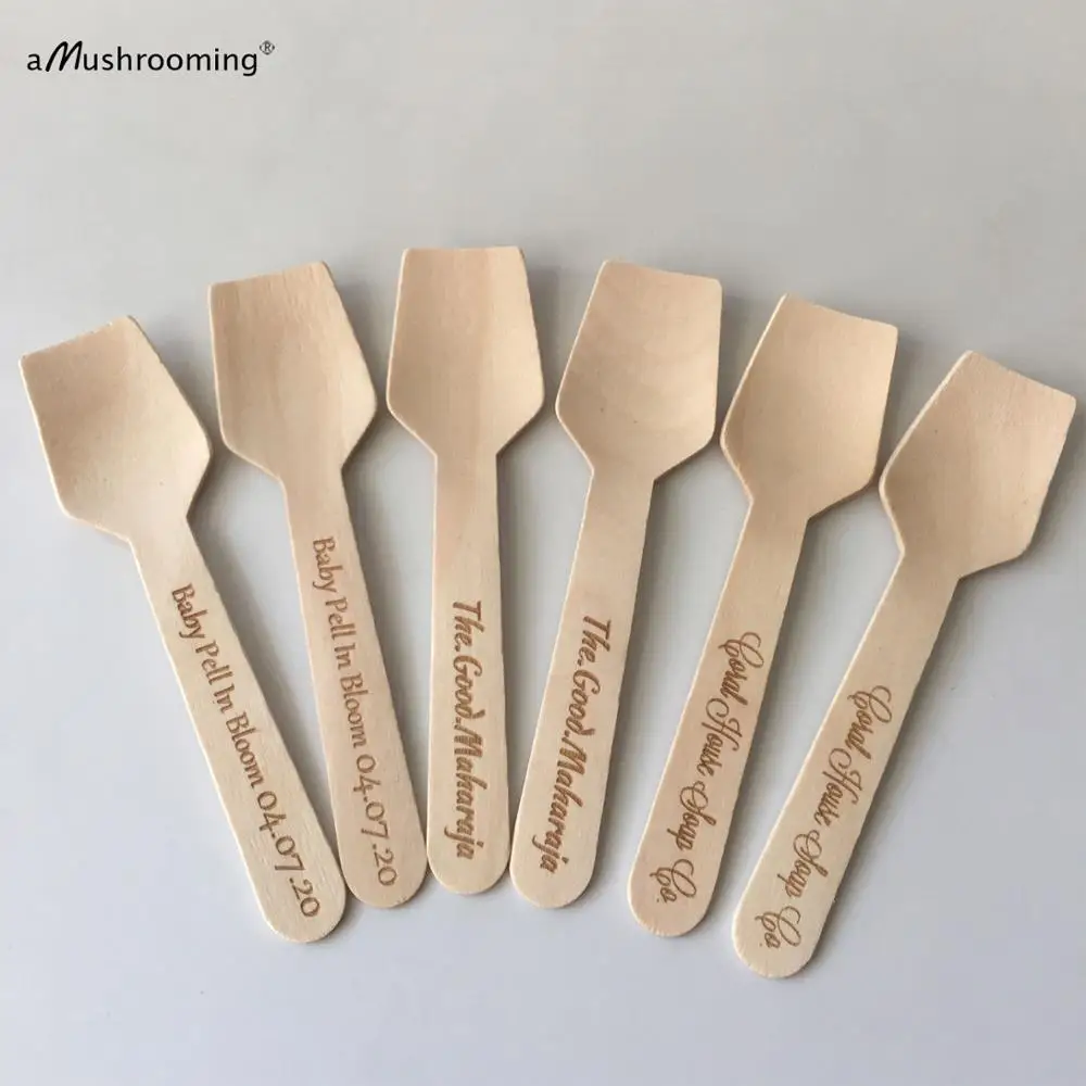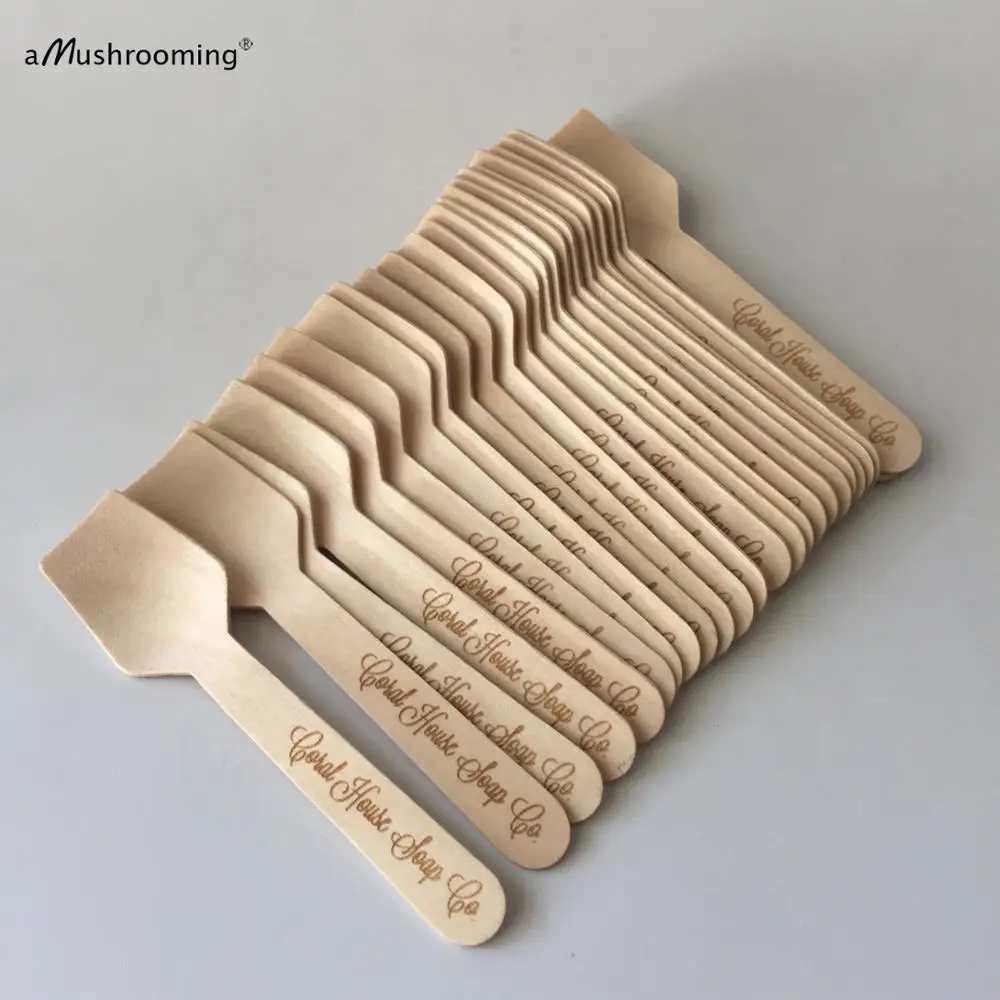 100 шт., одноразовые деревянные Косметические Ложки, экологически чистые, устойчивые, на заказ, мини-ложки