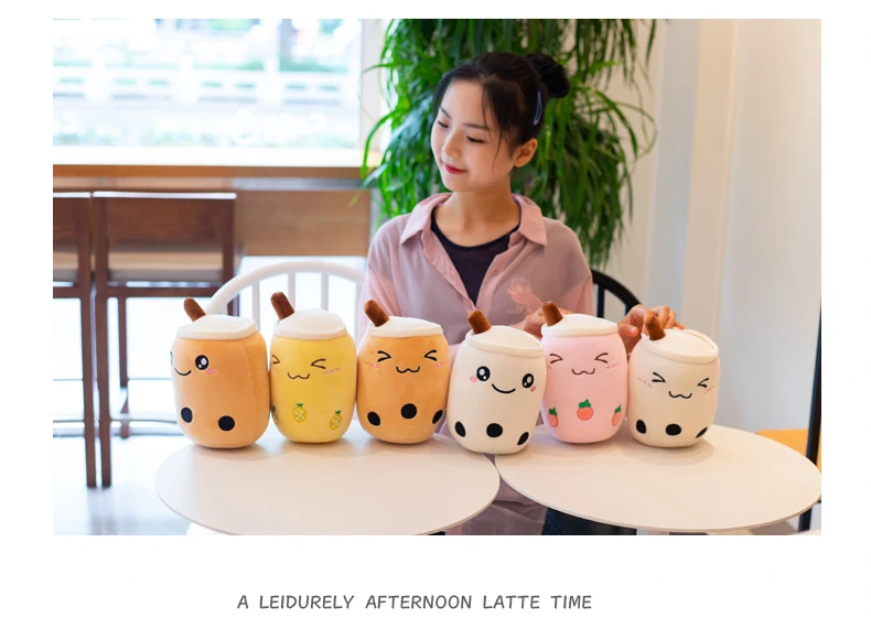Реалистичная Боба чайная чашка, плюшевая игрушка, фаршированная еда, пузырьковая клубника, ананас, молочный чай, мягкая кукла, молочный чай, чашка, детская игрушка, подарок на день рождения