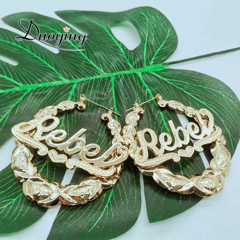 DUOYING 2021 пользовательское имя Бамбуковые серьги персонализирова...