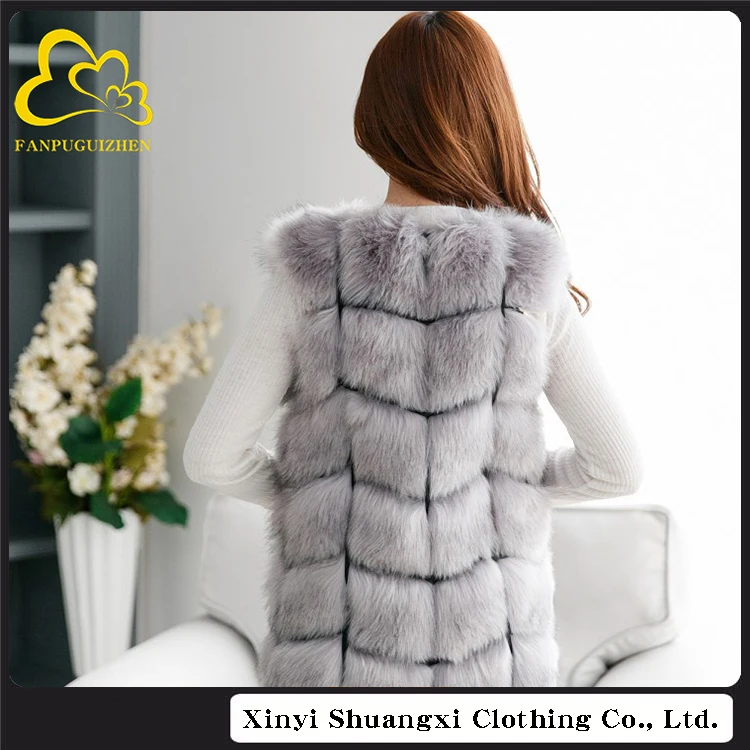Женский жилет из искусственного лисьего меха, зимний модный жилет средней длины из искусственного лисьего меха, теплые женские пальто