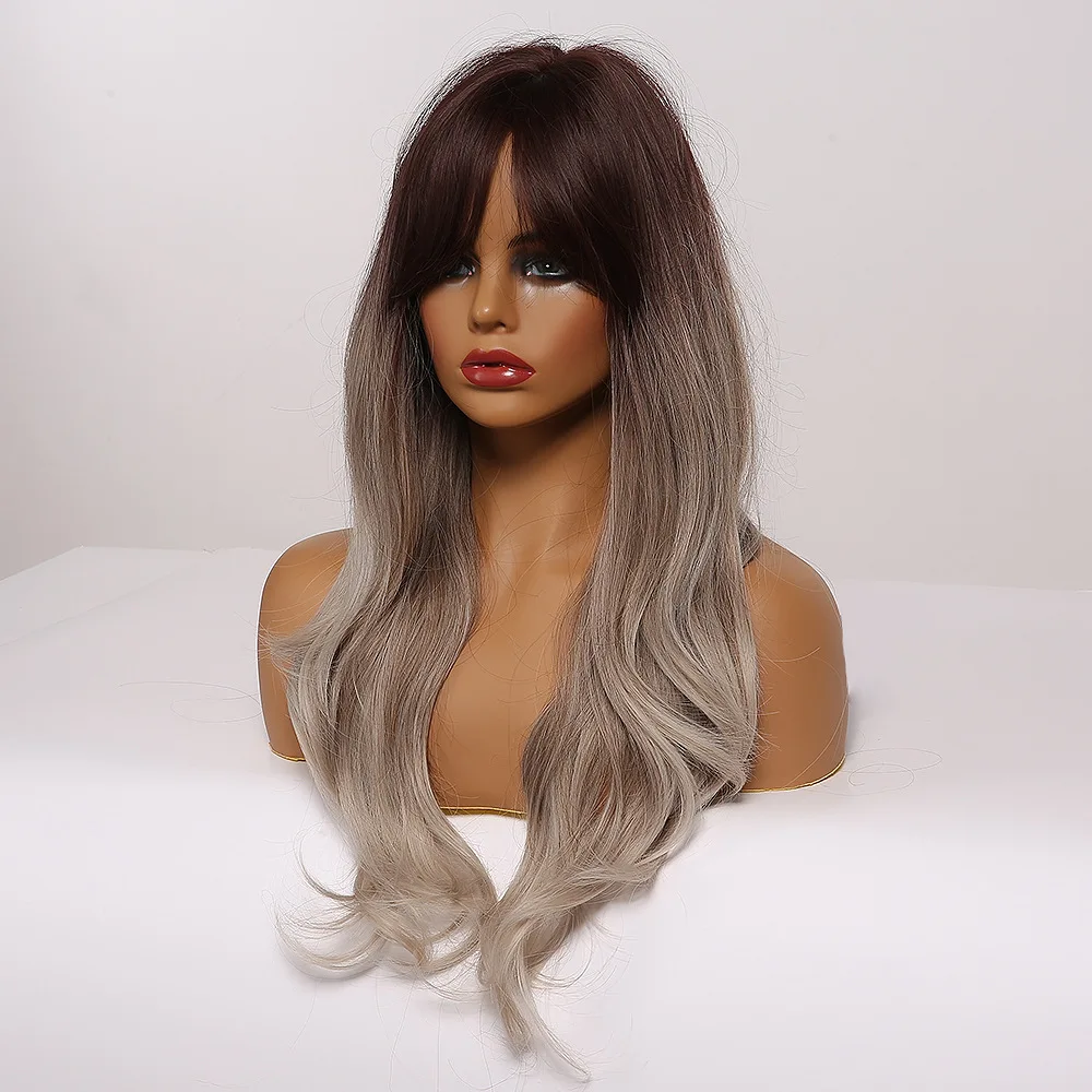 Волнистые длинные Искусственные парики для женщин, с челкой, с эффектом серого Омбре, термостойкие, для косплея