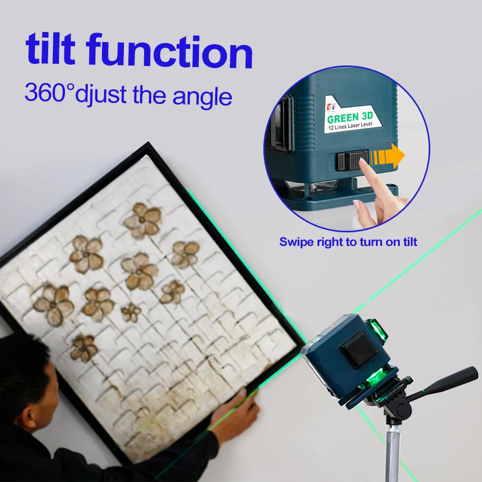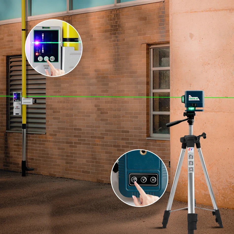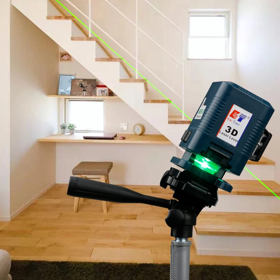 Лазерный 3D уровень KaiTian, штатив, 12 линий, самонивелирующийся, 360 градусов, горизонтальный и вертикальный крест, мощный зеленый приемник, Нивелир, лазерный нивелир