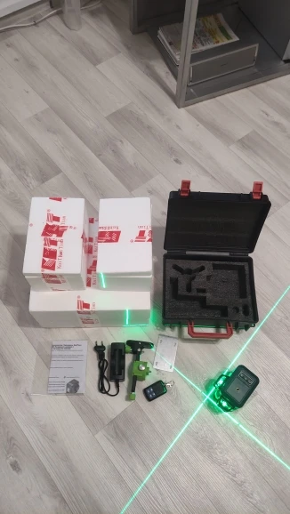 Все пришло, как и описано, уровень работает хорошо и достаточно мощный. Единственный минус, не все помещается в кейс и нужен дополнительный.