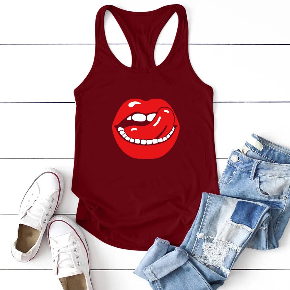 Красные губы Принт майки топы без рукавов женские летние 2020 Топы на бретельках женский сексуальный жилет Femme Графический унисекс Camiseta Tirantes Mujer