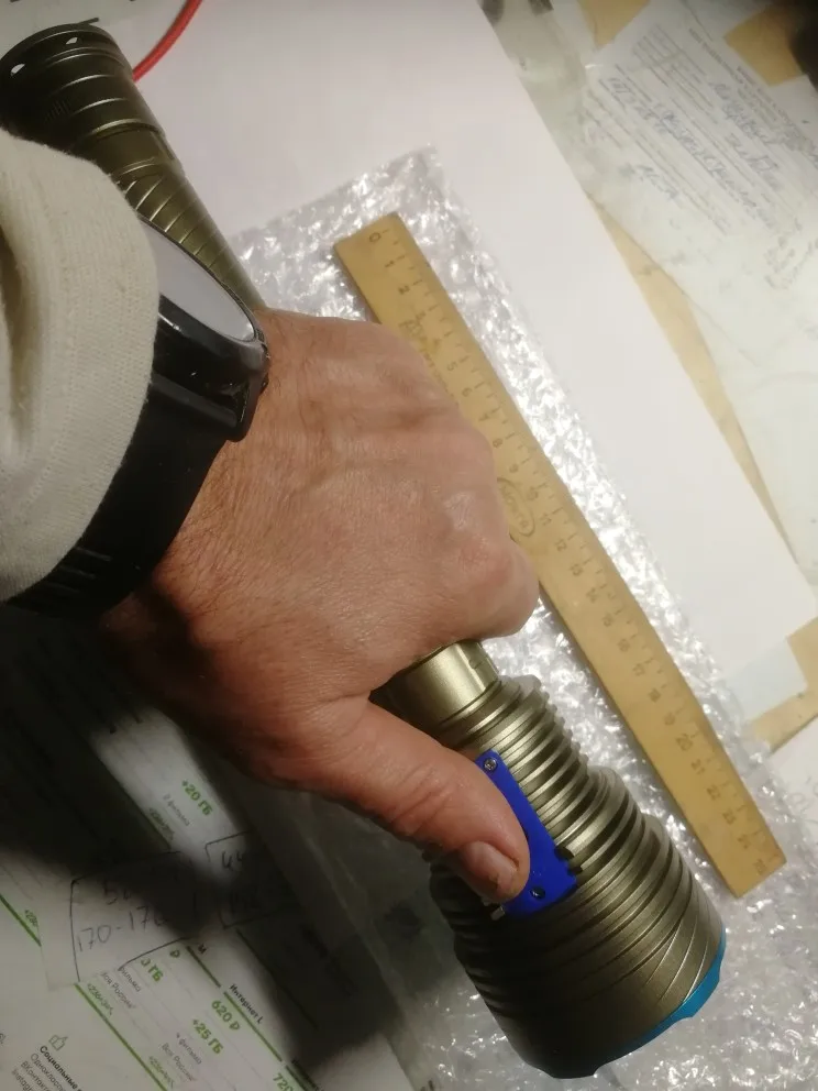 Фонарь светит ярко, с большим ореолом, для подводной охоты самое то(брал год назад у этого же продавца другой фонарь с одним светодиодом, тот светит лучем) не советую брать этот фонарь в комплекте с батарейками и зарядкой, т. к. у предыдущего те что были в комплекте по качеству полная фигня. докупил батареи bases 60а и зарядку Litokala, светит на ура