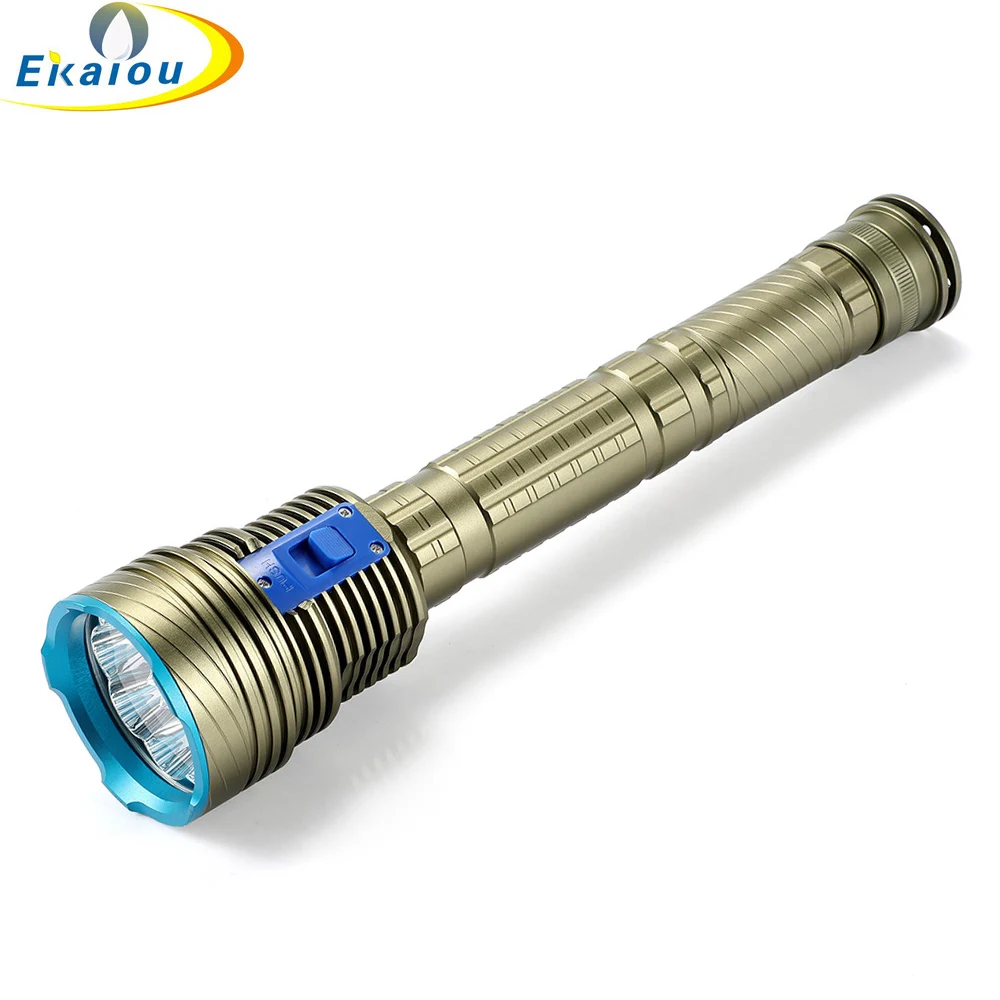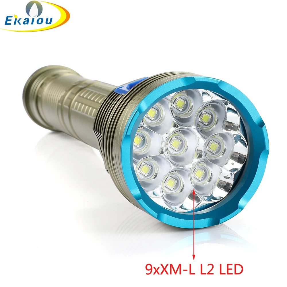 Светодиодный фонарь для дайвинга, Водонепроницаемый Подводный фонарь с белымжелтым светом для погружения на глубину до 150 м, тактический фонарь для подводной охоты, 9 x XM-L L2, 26650