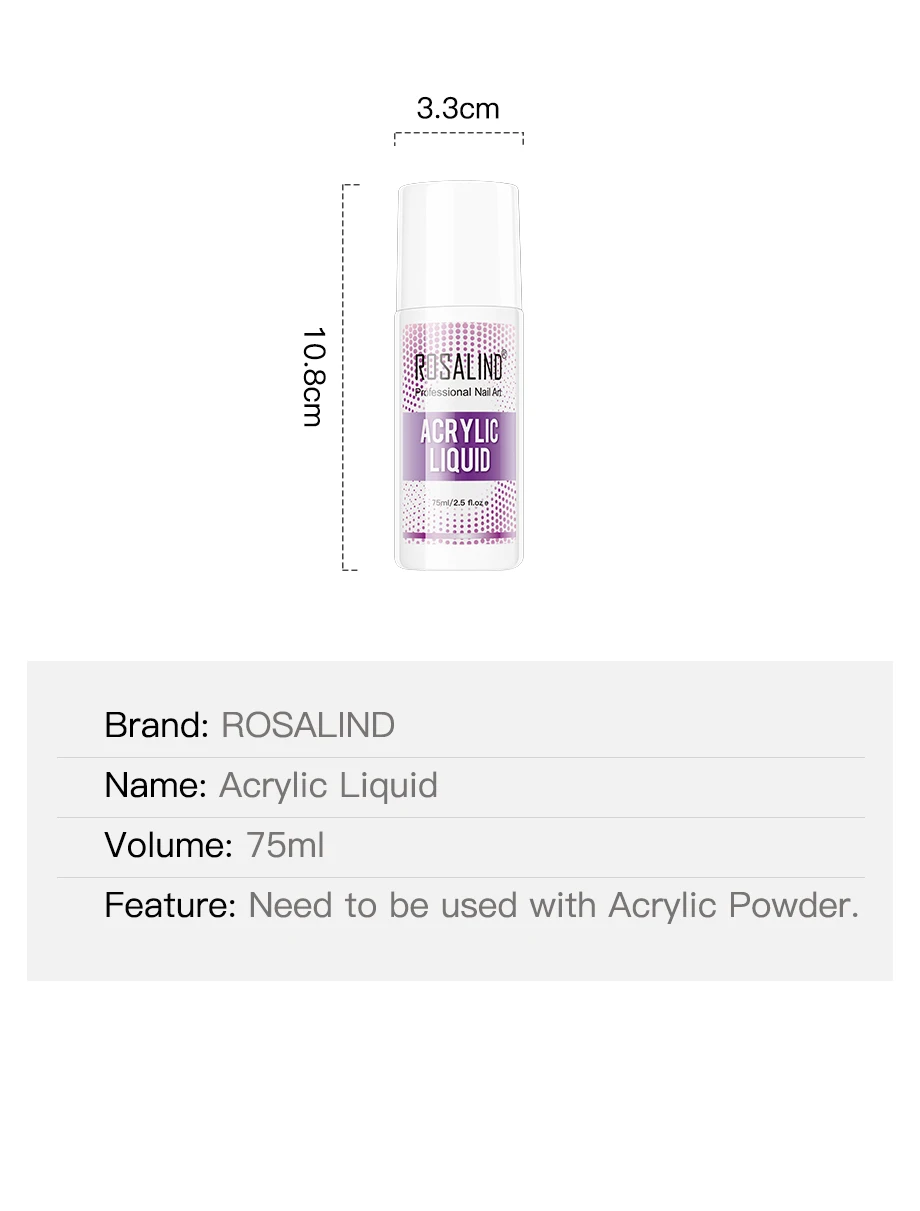 Характеристики Товара:Бренд: ROSALINDНаименование: акриловый порошокОбъем: 30 г/90 гЦвет: 3 цветаИзлеченная: УФ/Светодиодная лампаИспользуется для: наращивания ногтей и резьбы ногтейШаг за шагом:Шаг для наращивания ногтей:1. Нанесите базовый слой, вылечите светодиодный/УФ-лампой.2. Нанесите форму ногтя на ваш ноготь.3. Нанесите акриловый порошок акриловой жидкостью на гвоздь.4. Нанесите его на гвоздь. Подождите, пока он высохнет.5. Снимите форму ногтя.6. Обрежьте форму ваших ногтей.7. Нанесите верхнее покрытие, вылечите светодиодный/УФ-лампой.8. Отделка.Дизайн резьбы по ногтям шаг:1. Окуните кристаллический акриловый порошок акриловой жидкостью кисточкой.2. Приклейте его к ногтю и вырежьте. Подождите, пока он высохнет.3. Нанесите верхнее покрытие, вылечите светодиодный/УФ-лампой.4. Отделка.Примечание:Для 30 г акрилового порошка:1. Чистый объем составляет 30 г. Поскольку емкость бутылки составляет более 30 г, Кристальный акриловый порошок не будет полностью заполнен бутылкой!2. Плотно закрываются. Хранить в недоступном для детей месте.Для акрилового порошка 90 г:1. Чистый объем составляет 90 г. Поскольку емкость бутылки составляет более 90 г, Кристальный акриловый порошок не будет полностью заполнен бутылкой!2. Плотно закрываются. Хранить в недоступном для детей месте.