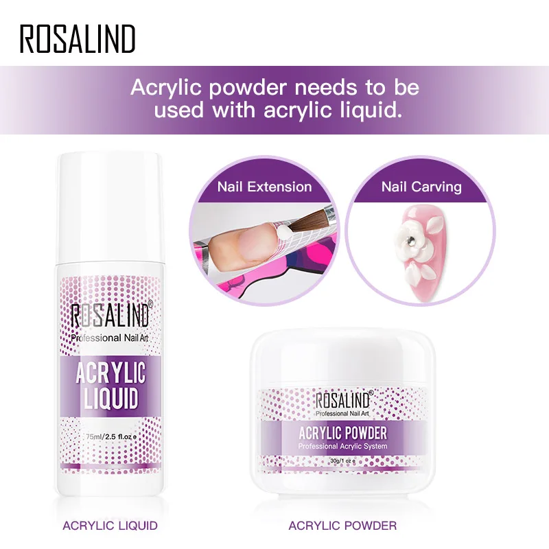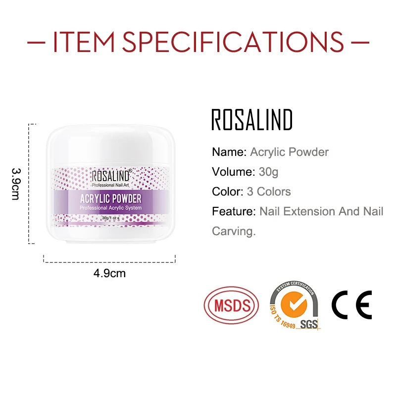 ROSALIND 30 г акриловый порошок для наращивания ногтей резьба по ногтям Кристальный полимер для дизайна ногтей