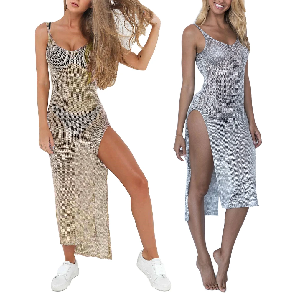 Сексуальное женское однотонное прозрачное облегающее длинное платье безрукавный с Боковым Разрезом