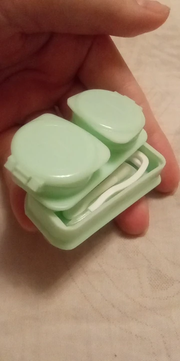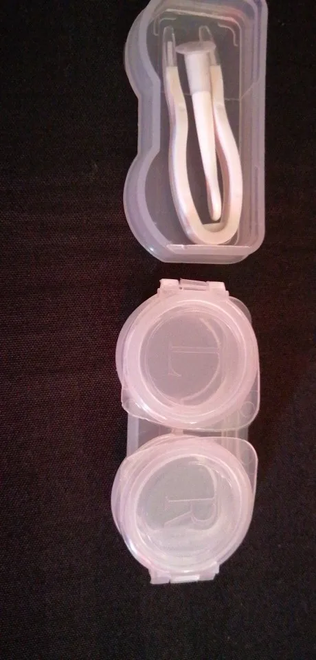 удобный футляр, качество отлично, плотно закрываются крышки, брали прозрачные, соответствует фото, маленький специально для сумочки