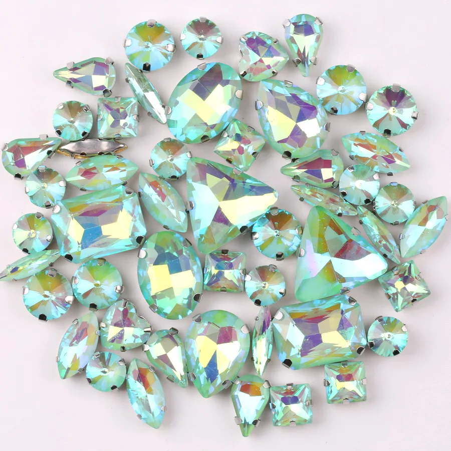Серебряный зажим желе конфеты Перидот AB 50 искусственных форм смешанные стеклянные кристаллы пришивные стразы свадебное платье обувь сумка сделай сам