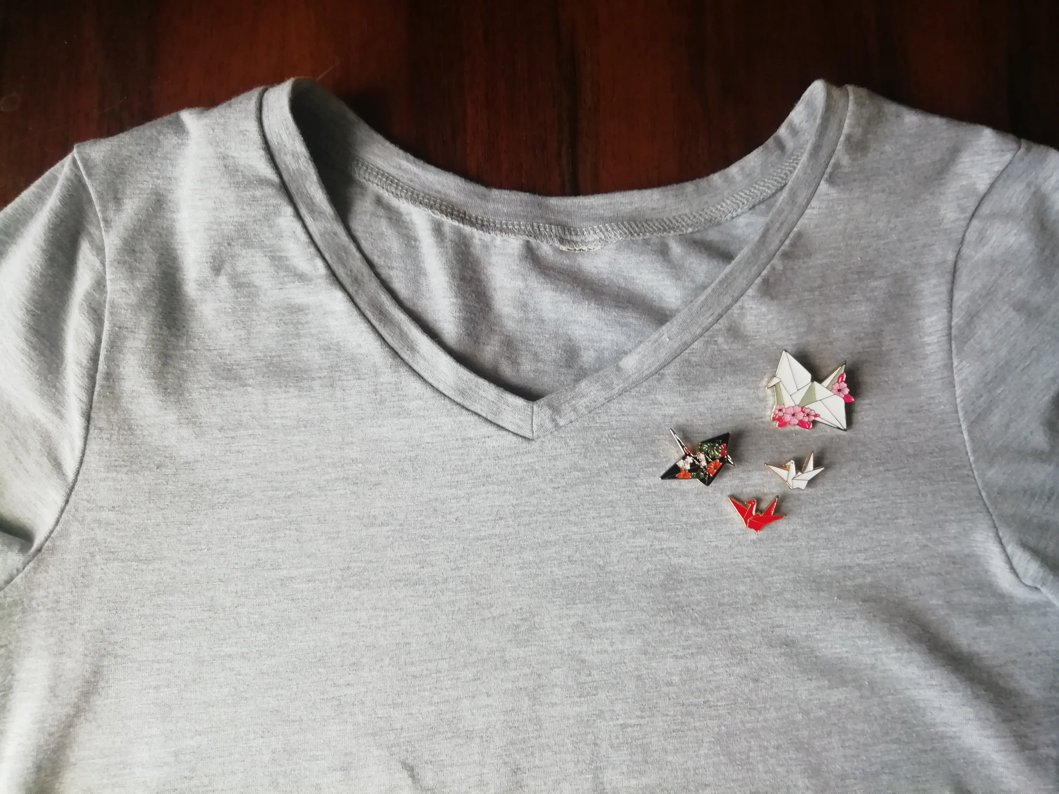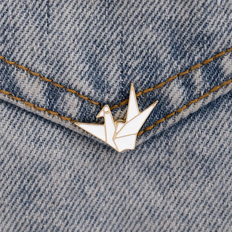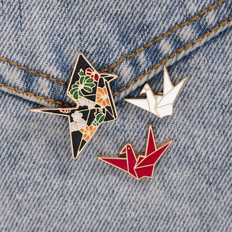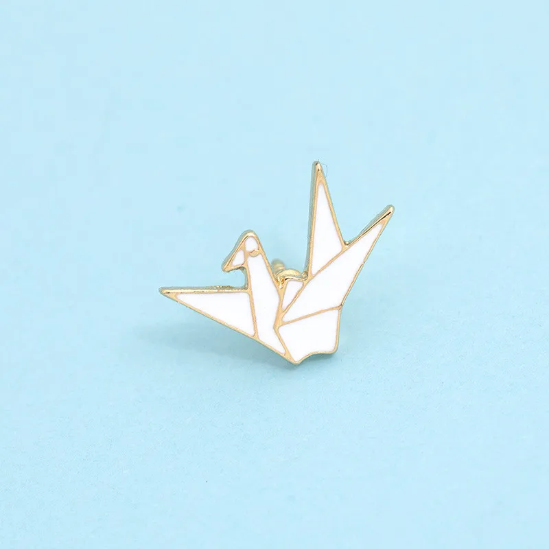 Брошь женская эмалированная в японском стиле Журавль из бумаги значки с животными