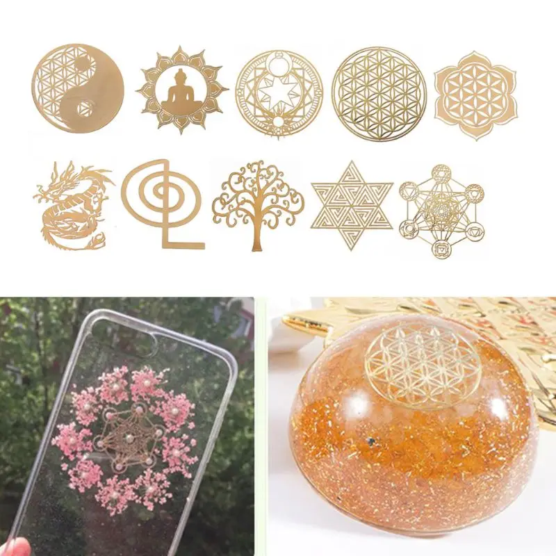 Наклейки из эпоксидной смолы, 10 шт., 6,8 см, 7 чакр, медная энерге...